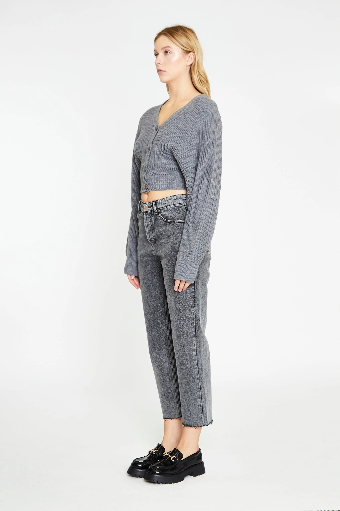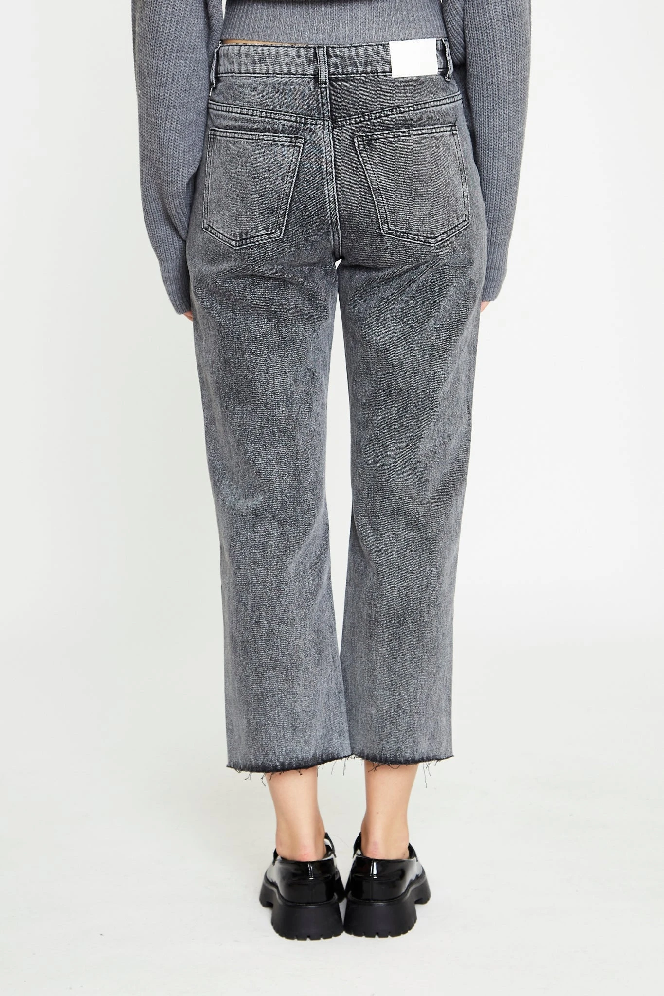 Glamorous Womens Black Acid-Wash Straight Leg Jeans. These jeans will be an Autumn wardrobe staple! Featuring high waist and cut off straight leg shape, youll want to wear these everyday! Pair with a cute top and heels for an on-trend date night look.