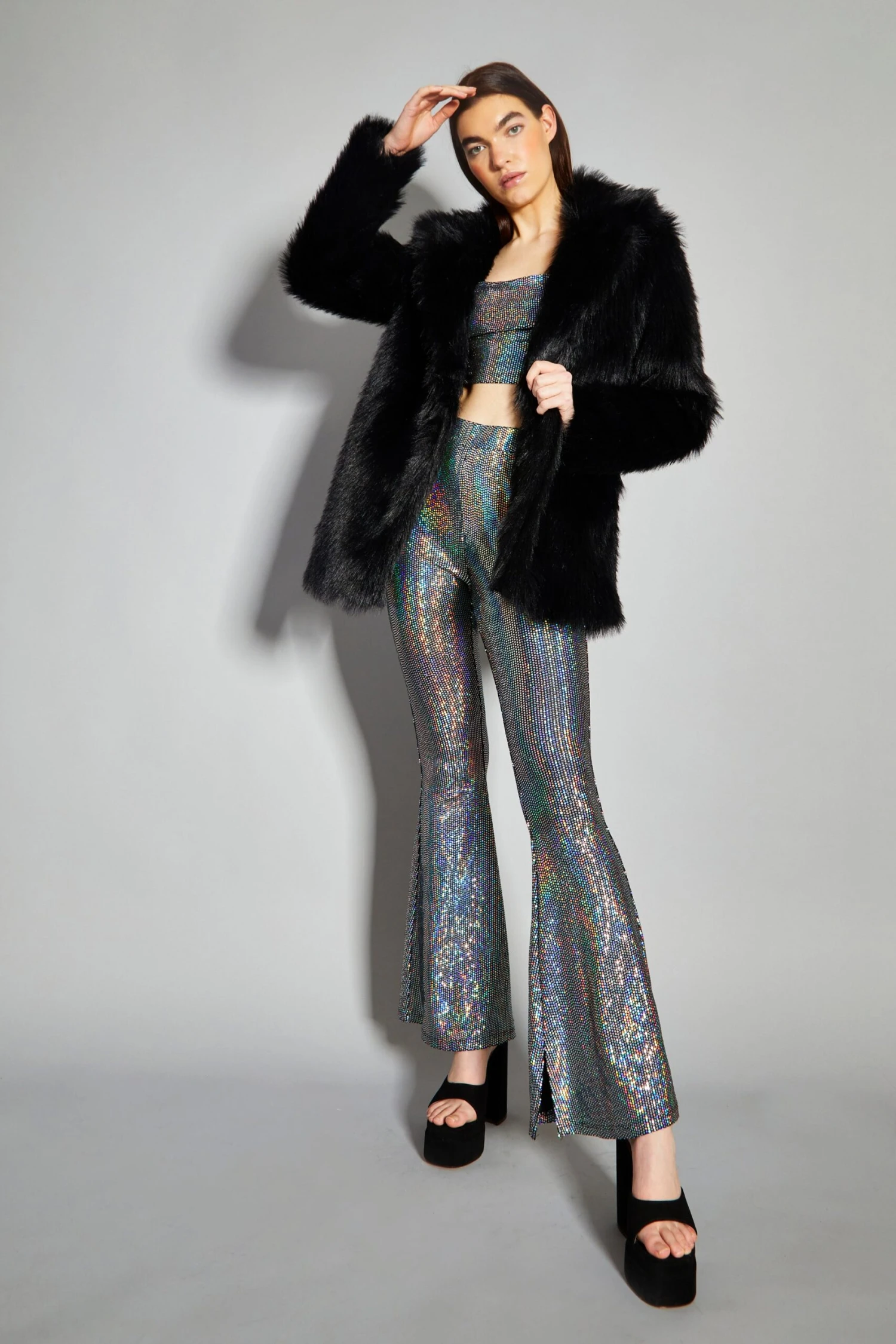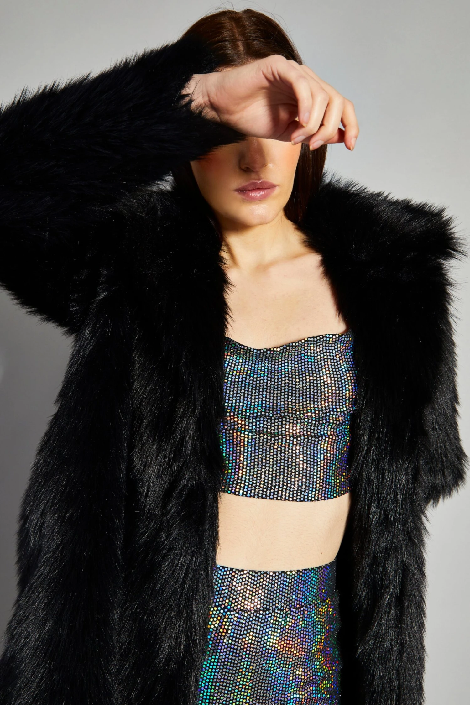 Glamorous Black Faux Fur Coat. This statement piece will look great this season. Featuring a luxe faux fur fabric, you wont regret adding this piece to your wardrobe. This stylish coat can be dressed up or down as the perfect way to finish off any look this Winter!