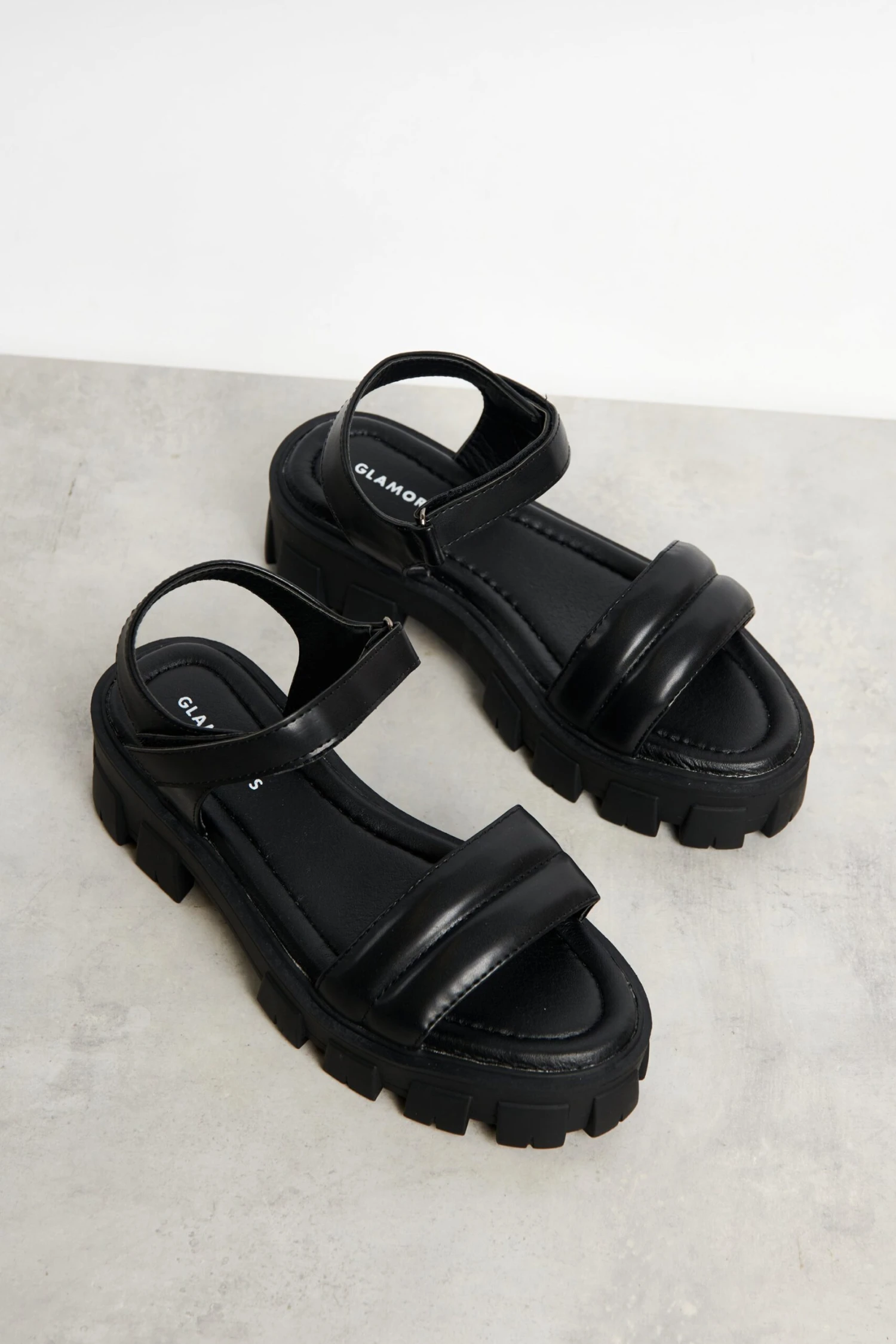 | Glamorous Womens Black Outdoor Chunky Sandals. A spring must have, these chic chunky sandals will go with everything in your wardrobe. Dress up or down for any occasion. Looks great teamed with shorts and a cute top for a relaxed daytime look or styled with a statement dress for elevated evenings. Composition: Upper 100% Textile, Insole 100% PU, Outsole: 100% Rubber |