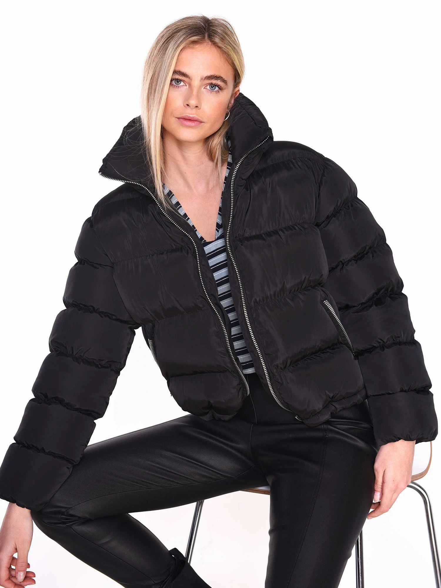 Glamorous Womens Black Padded Puffer Long Sleeve Jacket. You can always rely on our black padded puffer jacket. This classic black coat is perfect for any occasion. Team with some relaxed jeans and white blouse for the ultimate look.Â