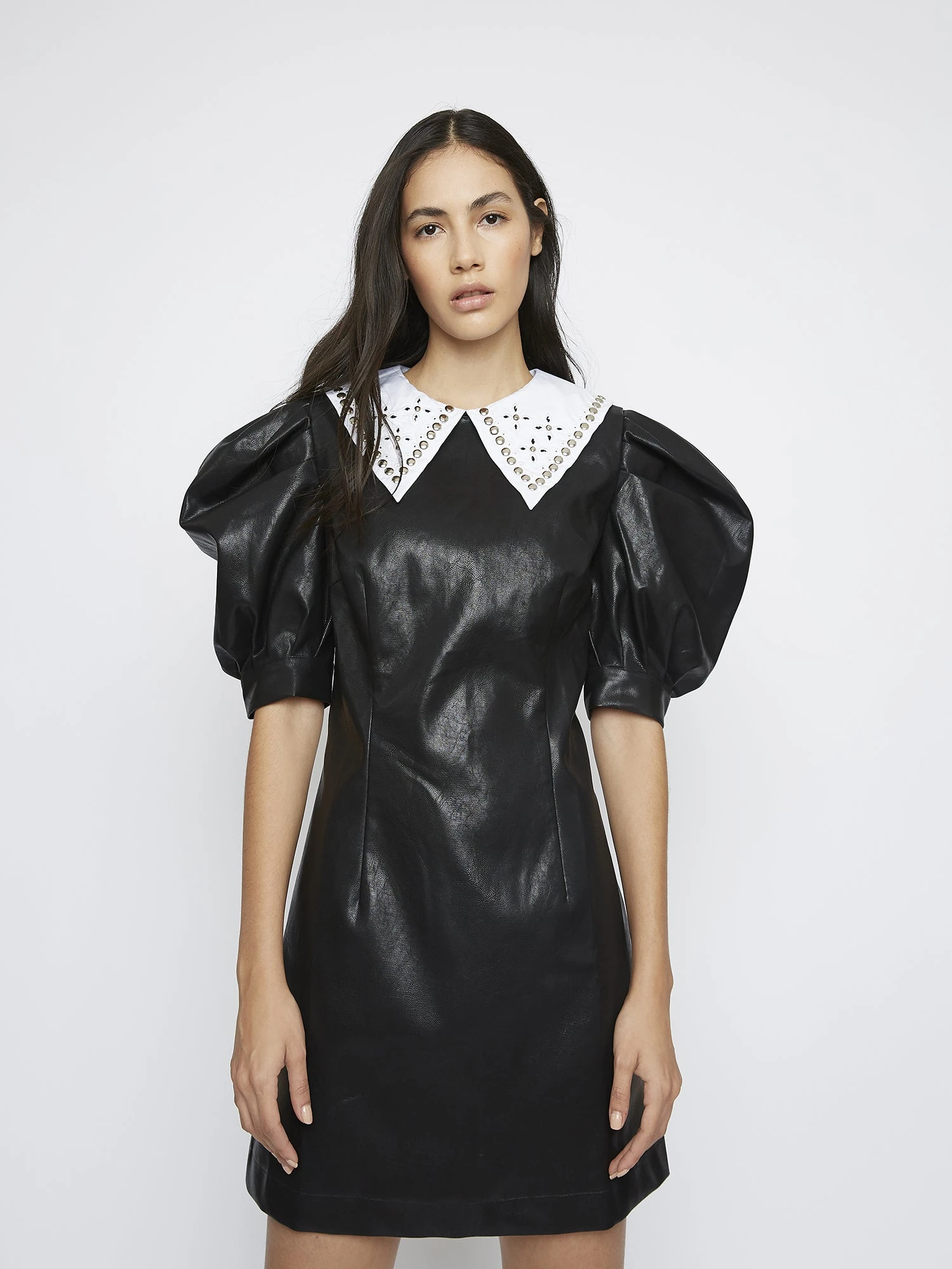 Glamorous Women’s Black PU Statement Collar Puff Sleeve Dress. Featuring this seasons biggest trends including statement collar and puff sleeves, this chic black mini dress is a must have for SS21. Looks great dressed up with a pair of statement heels for elevated evenings or dressed down with boots for a chic off duty look.Â