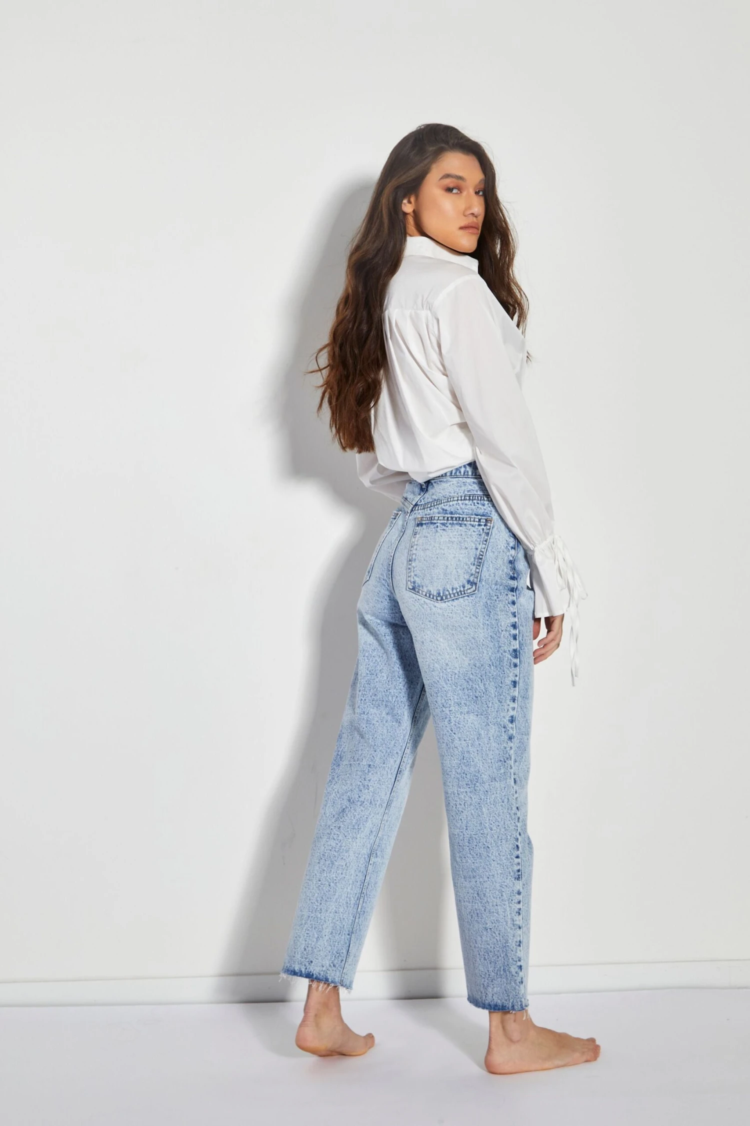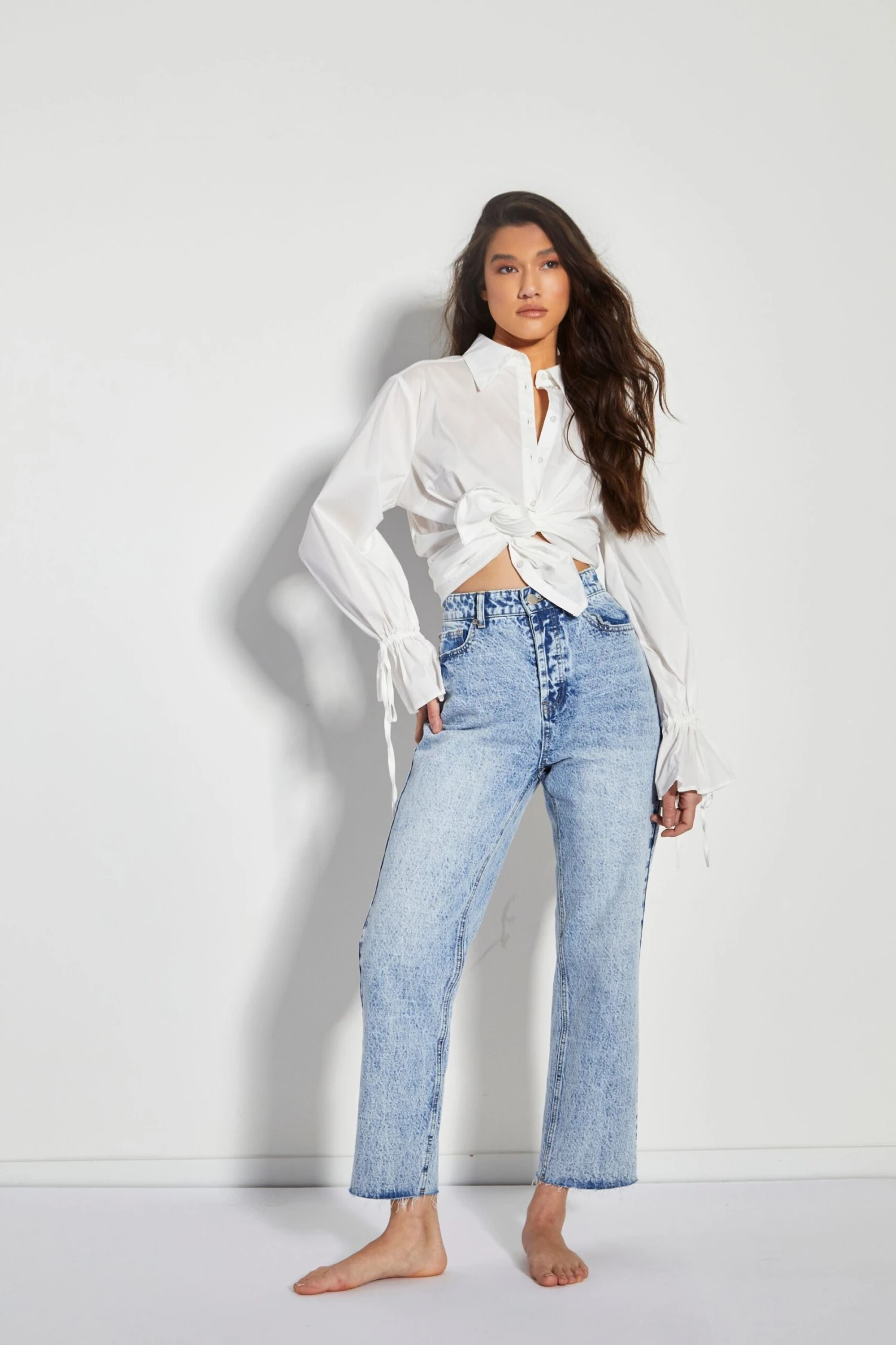 Glamorous Womens Blue Acid Wash Cut Off Straight Leg Jeans. These jeans are perfect for Spring. Featuring a blue acid wash colour and flattering fit you wont fail to impress in these staple denim jeans. These straight leg jeans will be your new best friend! Pair with a cute white blouse and some chunky trainers for that effortless chic daytime look.Â