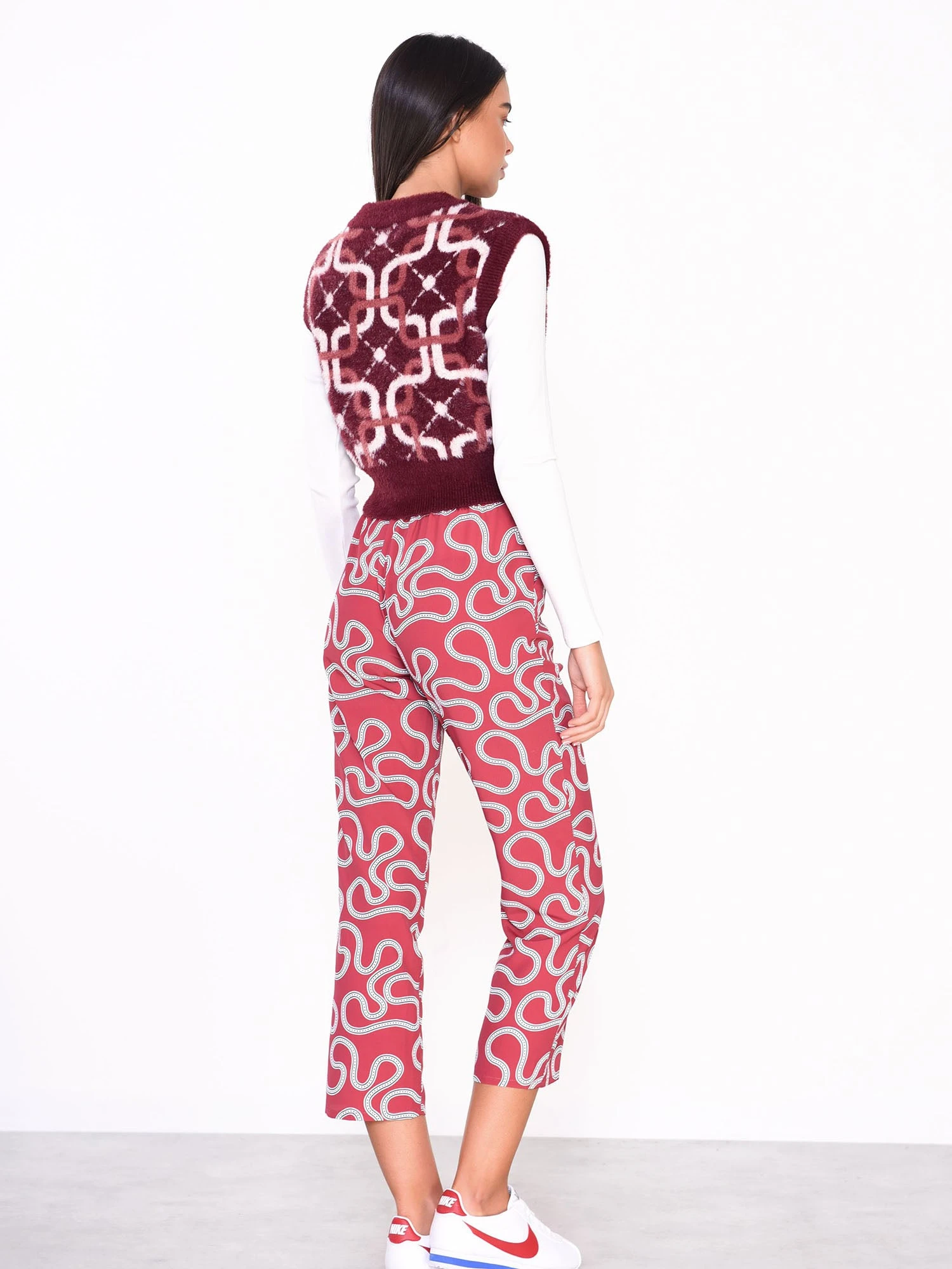 Glamorous Women’s Burgundy Pattern V-Neck Sleeveless Jumper. This piece is perfect for your wardrobe this season. This fashion forward jumper is sure to elevate your cool casual collection to the next stylish level. Team with denim jeans and a long sleeved top for an effortless, minimal yet on-trend look this season.Â