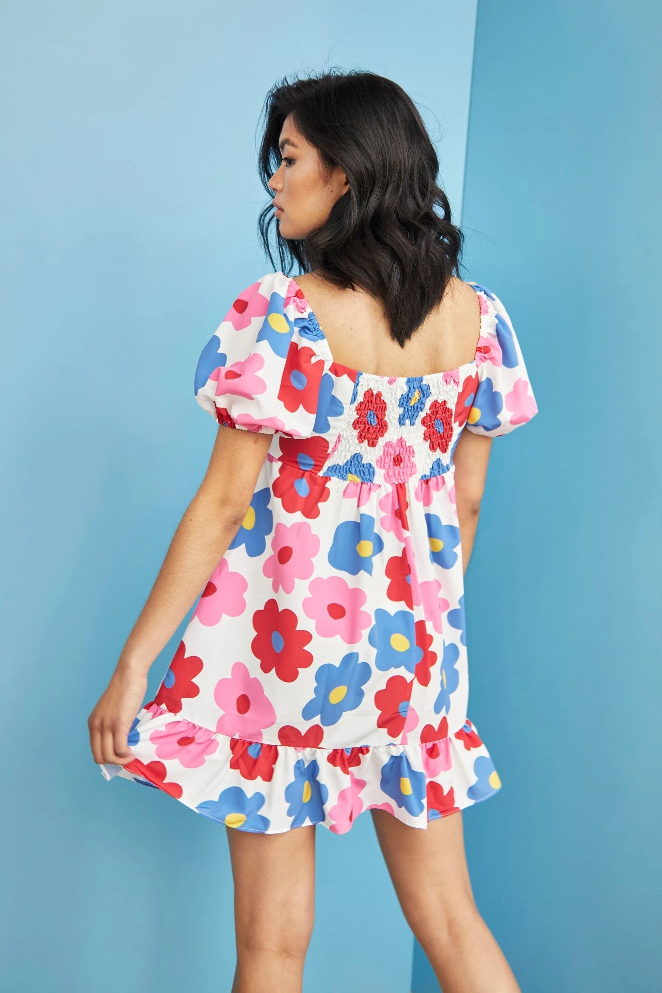 Glamorous CareΒ Bright Large Floral Puff Shoulder Mini Dress. This dress is perfect for your wardrobe this season. this sustainable piece in a floral print will look great on you this Autumn. Featuring a square neck and mini dress fit, this dress will have heads turning. Pair with chunky boots for a effortlessly chic look.