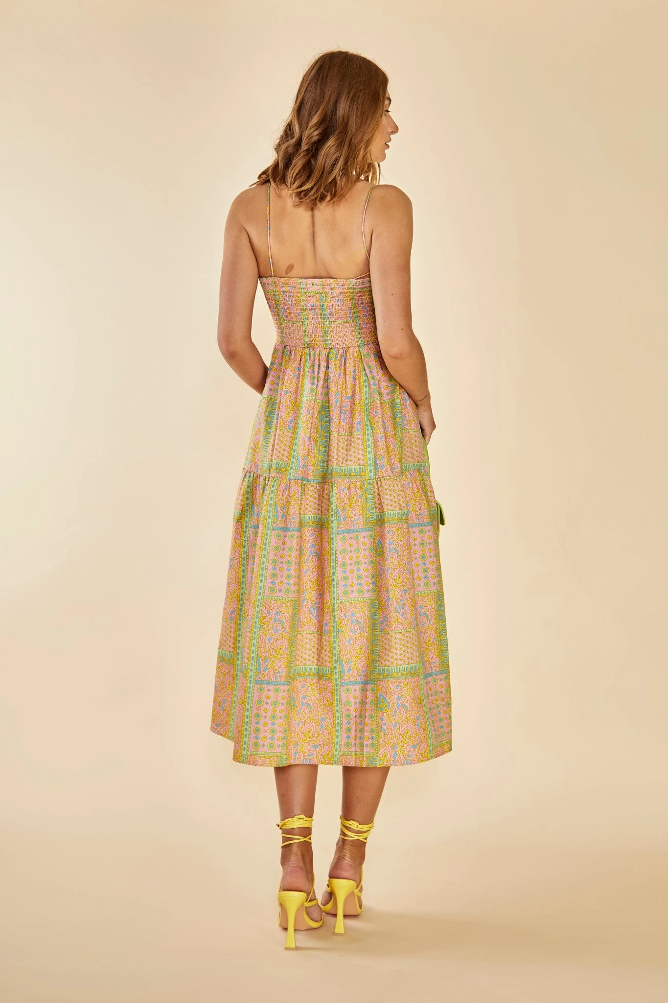 Glamorous Care Pink Neon Paisley Empire Line Strappy Midaxi Dress. Perfect for all occasions, this super flattering midaxi dress features an empire line fit, gathered skirt and smocked back panel. Elevate the look with some strappy heels for an effortless sustainable night-time look.