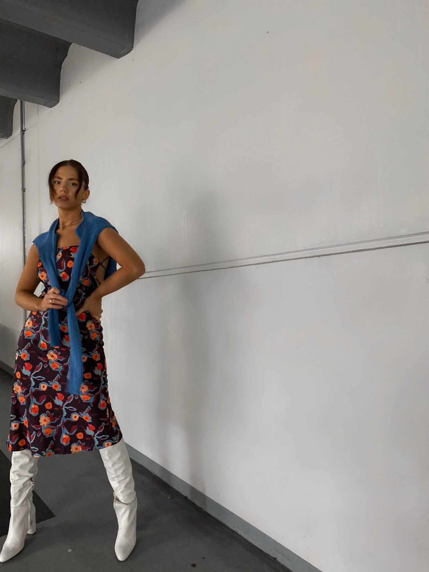 Glamorous Care Plum Abstract Floral Strappy Tie Back Midi Dress