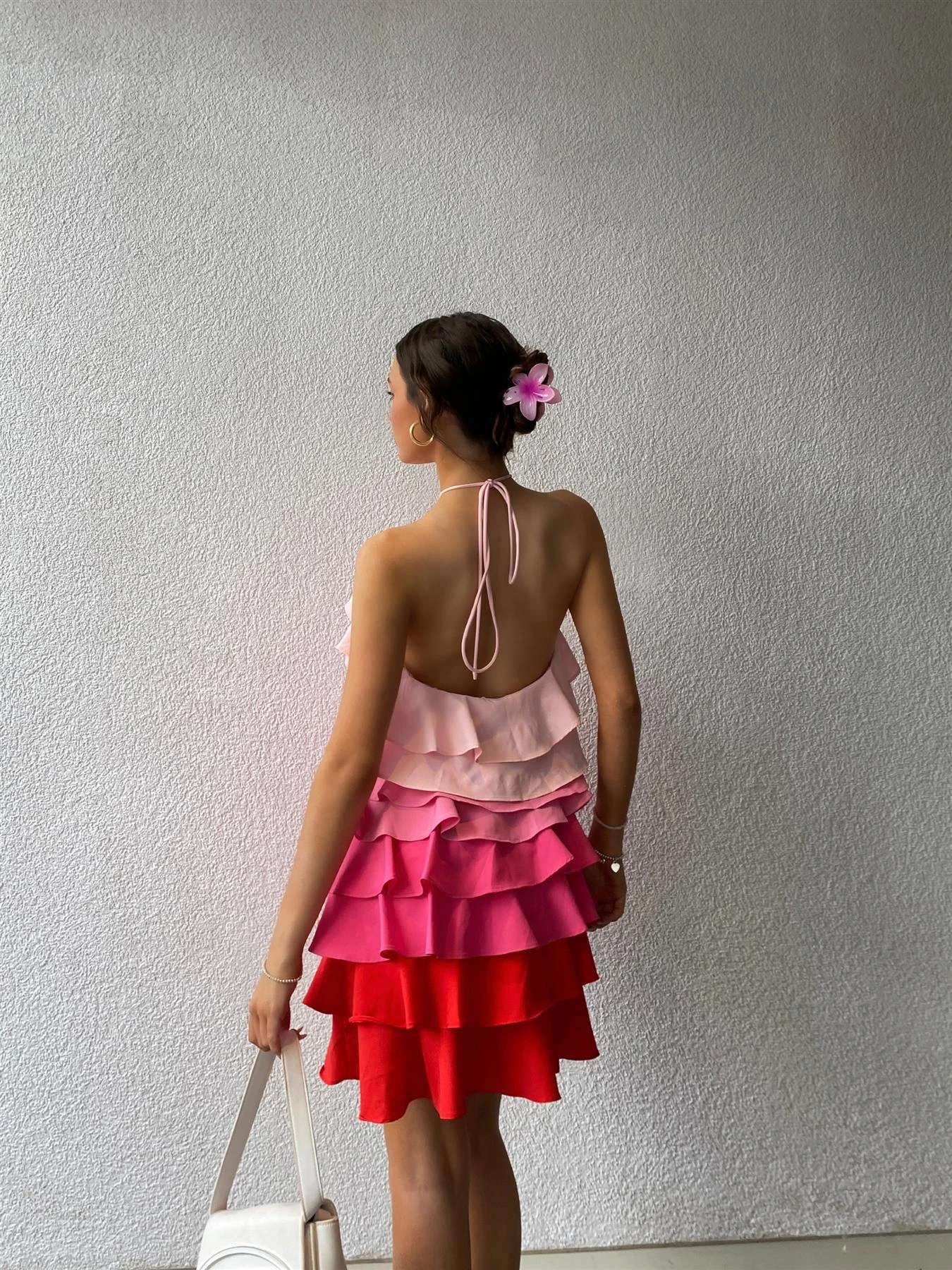 Collective the Label Women’s Christina Halterneck Ruffle Mini Dress -Pink/Red Ombre. Look and feel your absolute best with this halterneck mini dress! A thoughtfully design colour palette of red and pink tones provides an eye-catching ombre effect, while the layers of ruffles ensures a timelessly flattering fit. Exquisite, ONE OF A KIND PARTY WEAR, designed to make you stand out at any special occasion.