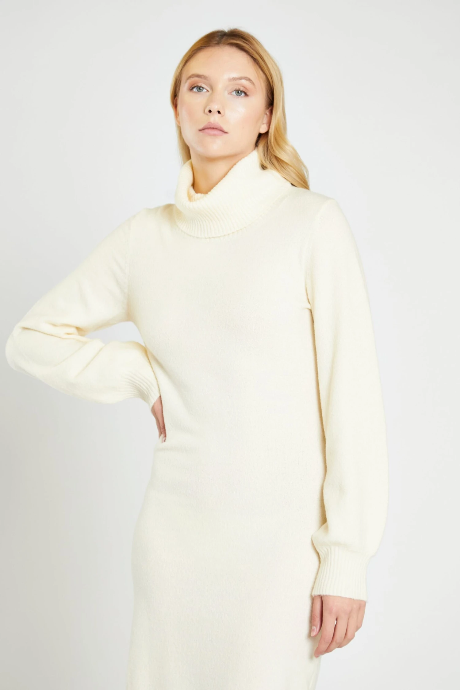 Glamorous Cream Knitted High Neck Midi Dress. Stay cosy yet fashionable with this knitted midi dress this season. Featuring a high neckline with long sleeves and side split detail, this piece will be your go to for every occasion! Looks great teamed with a pair of chunky ankle boots.