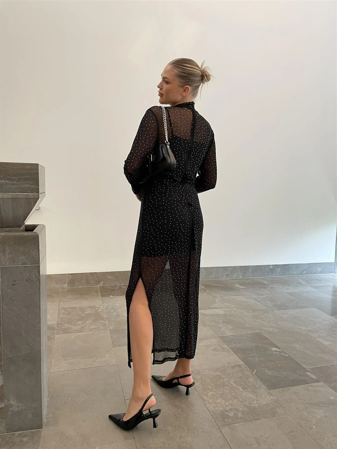 Glamorous Curve Andi Mesh Bodycon Maxi-Dress -Black Diamante