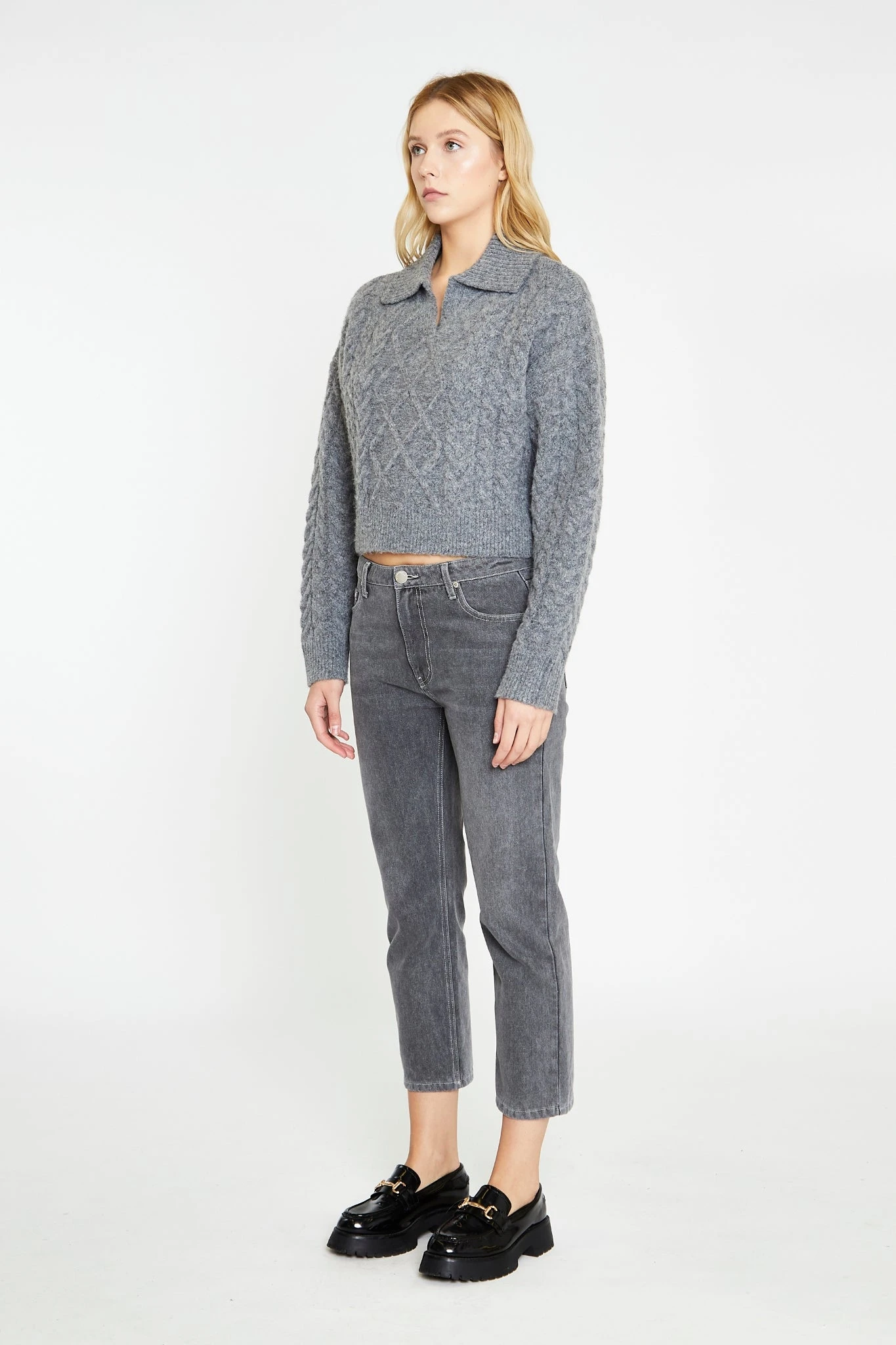 Glamorous Womens Dark-Grey Marl Collared Cable Knit Jumper. A perfect pick for when you need a cozy layering piece, this Dark-Grey Marl Collared Cable Knit Jumper features a rib knit collar, cuffs, and hem, plus classic cable knit detailing for a timelessly stylish look. Pair with some black straight leg jeans for a comfortable stylish look!
