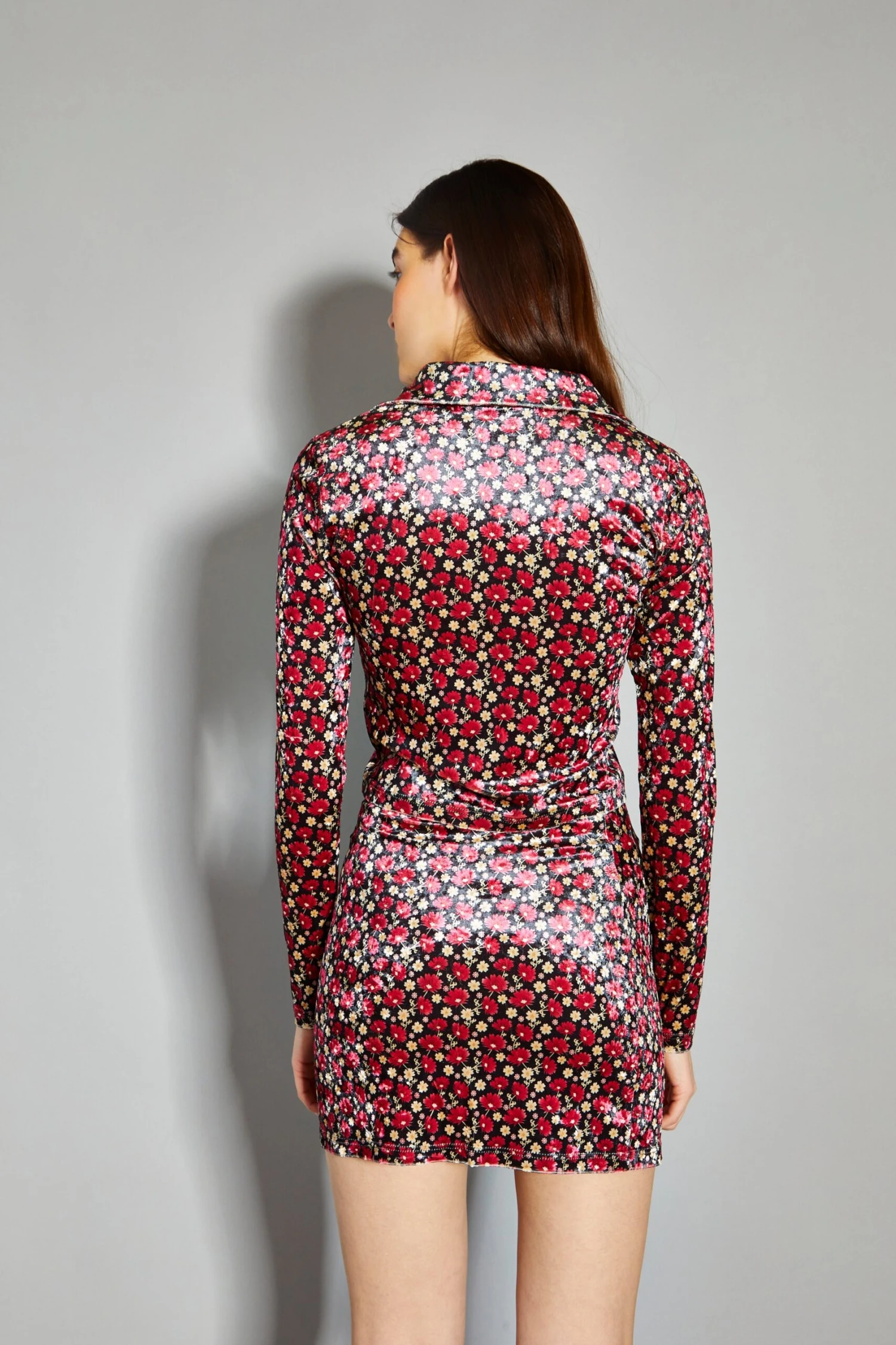 Glamorous Floral Print Velvet Button Front Shirt. When in doubt, opt for our florals. Featuring button front detail and an on-trend floral print in a luxe velvet fabric, this top is a must-have for the upcoming season. Pair with our matching co-ord mini skirt and some chunky heels for the ultimate fashion forward look this winter.