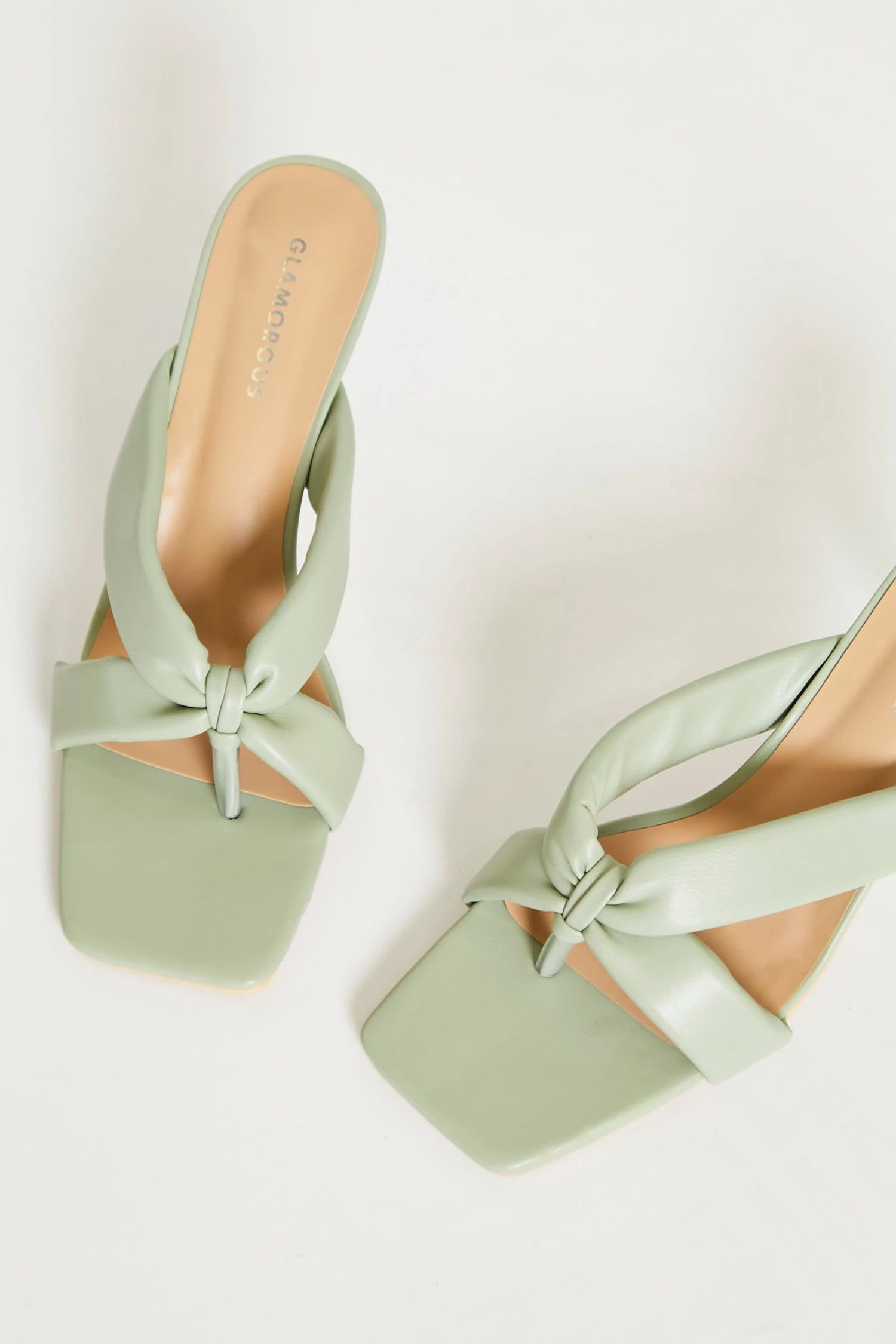 Glamorous womens green toe pole mules. Featuring low heel, statement square toe and bow strap detail these chic mint mules will elevate every look. Looks great teamed with a straight-legged trousers for a brunch date or dressed up a cute mini for an effortless wedding guest look.