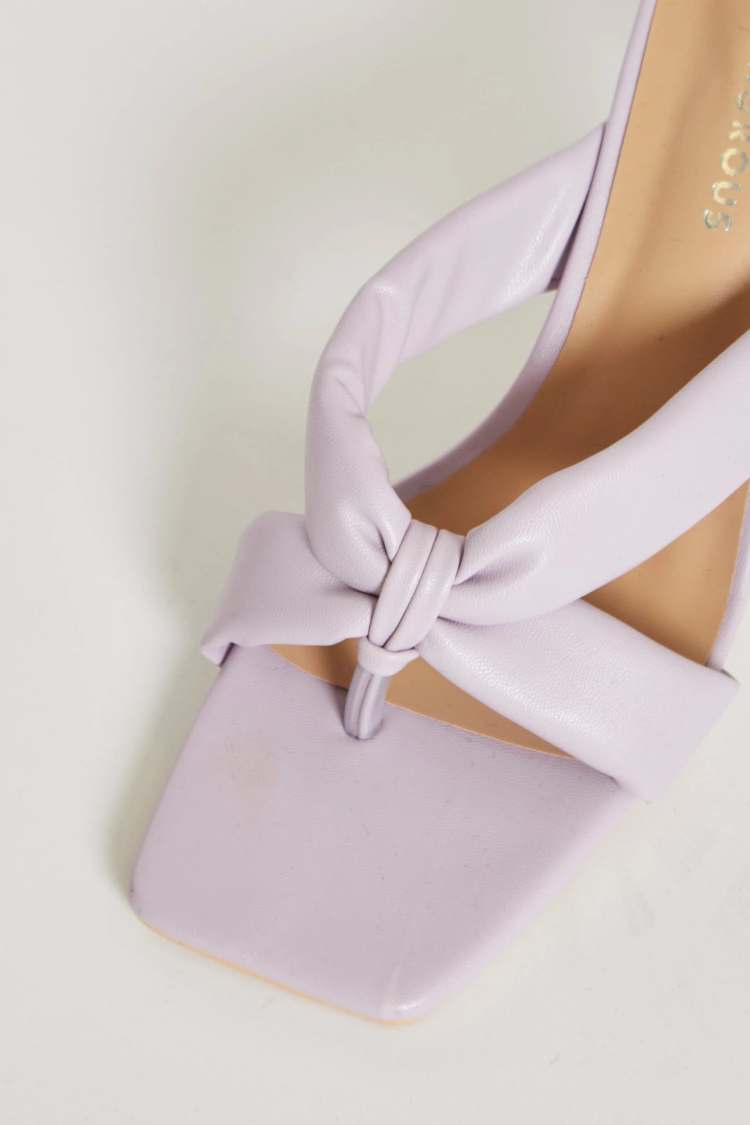 Glamorous womens lilac toe pole mules. Featuring low heel, statement square toe, and bow front detail, these heels are super to elevated every look. Looks great teamed with a straight-legged trousers for going out or dressed up with a cute mini for an effortless wedding guest look.