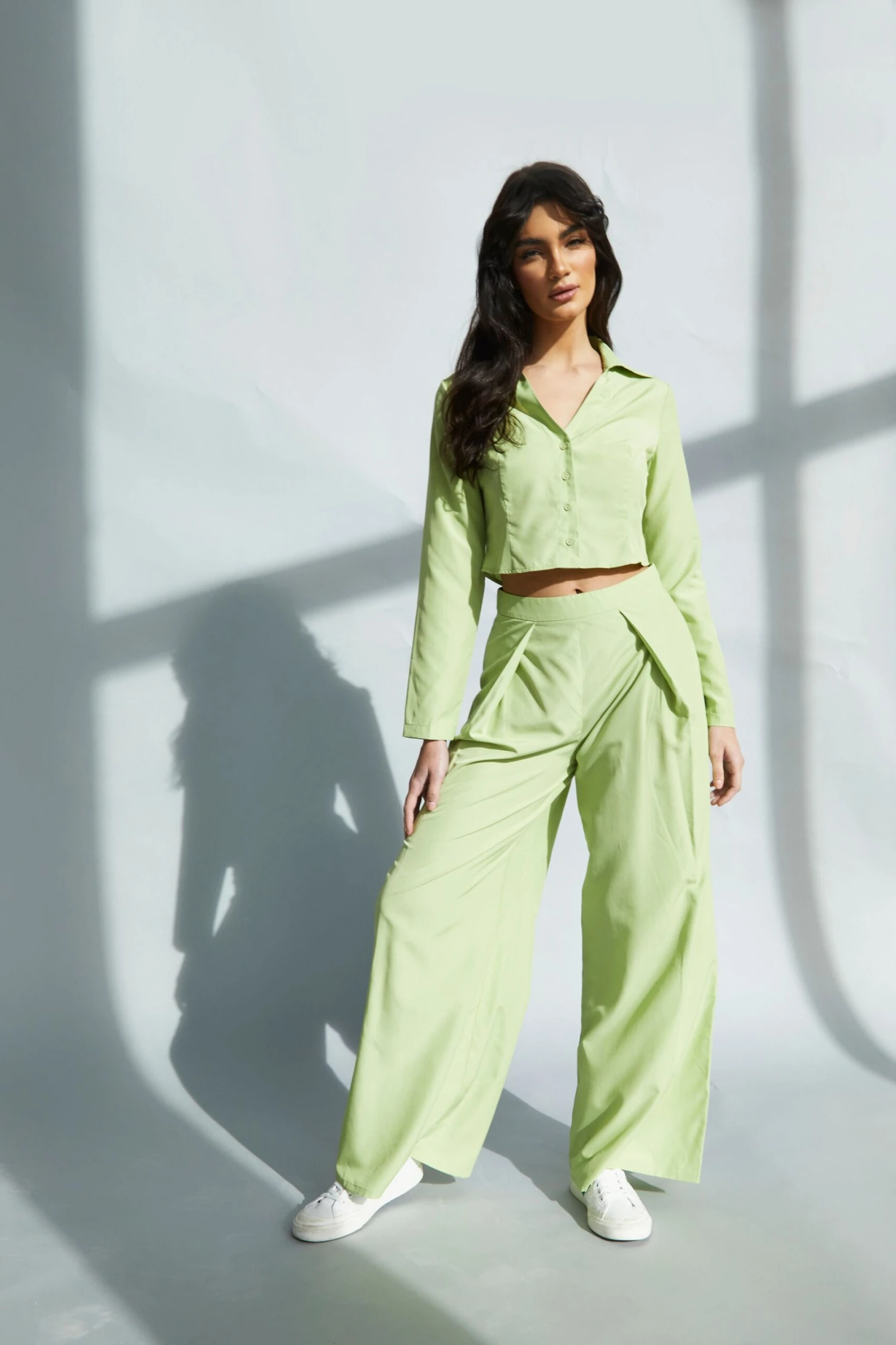 Glamorous Womens  Lily Green Crop Button Front Shirt. This shirt is perfect for your wardrobe this season! Featuring a button up front and on trend colour, we love this piece here at Glamorous. Pair with matching co-ord trousers and chunky heels and a shoulder bag for the ultimate fashion forward look.
