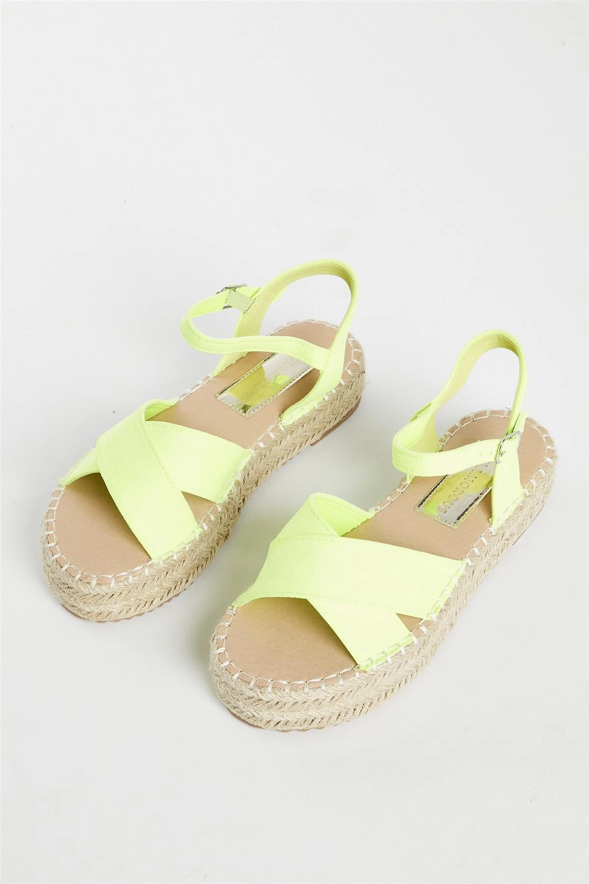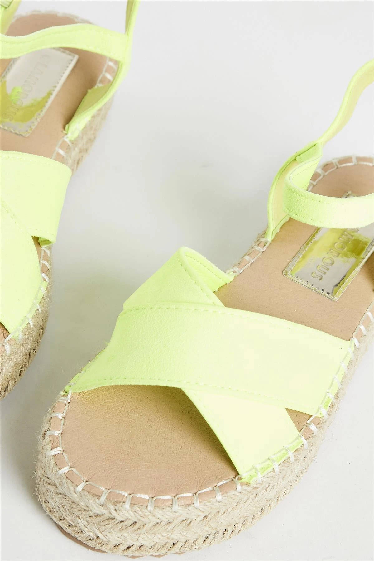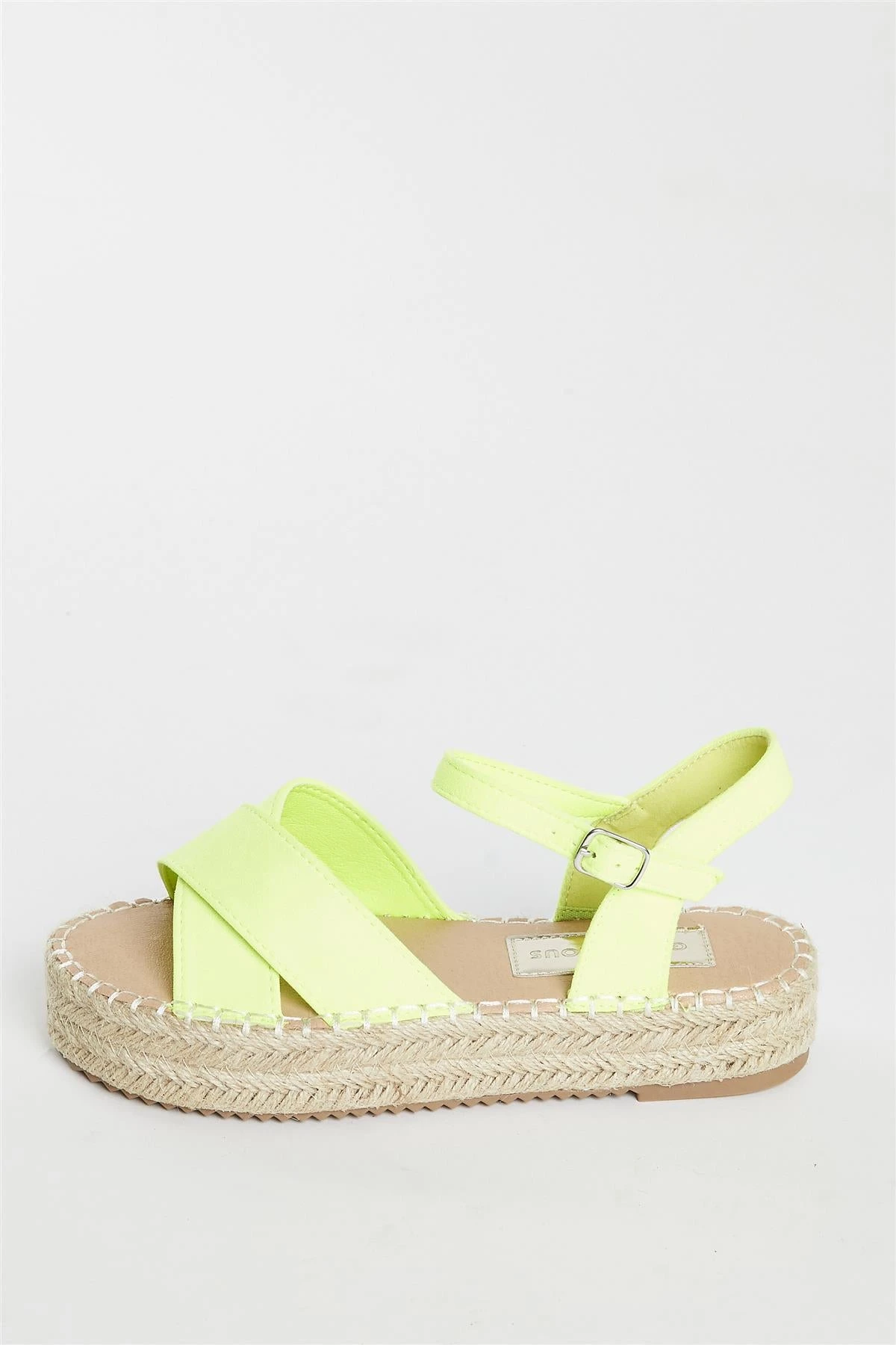 Glamorous Women’s Lime Micro Espadrille Sandals. These Yellow Espadrille Sandals are just what you need to step up your summer wardrobe game! With a thick espadrille sole, adjustable straps for a perfect fit, and a criss-cross design, they’ll keep your feet looking and feeling cool all season long. Open toe and ready to take you places – the only question is, where to next?