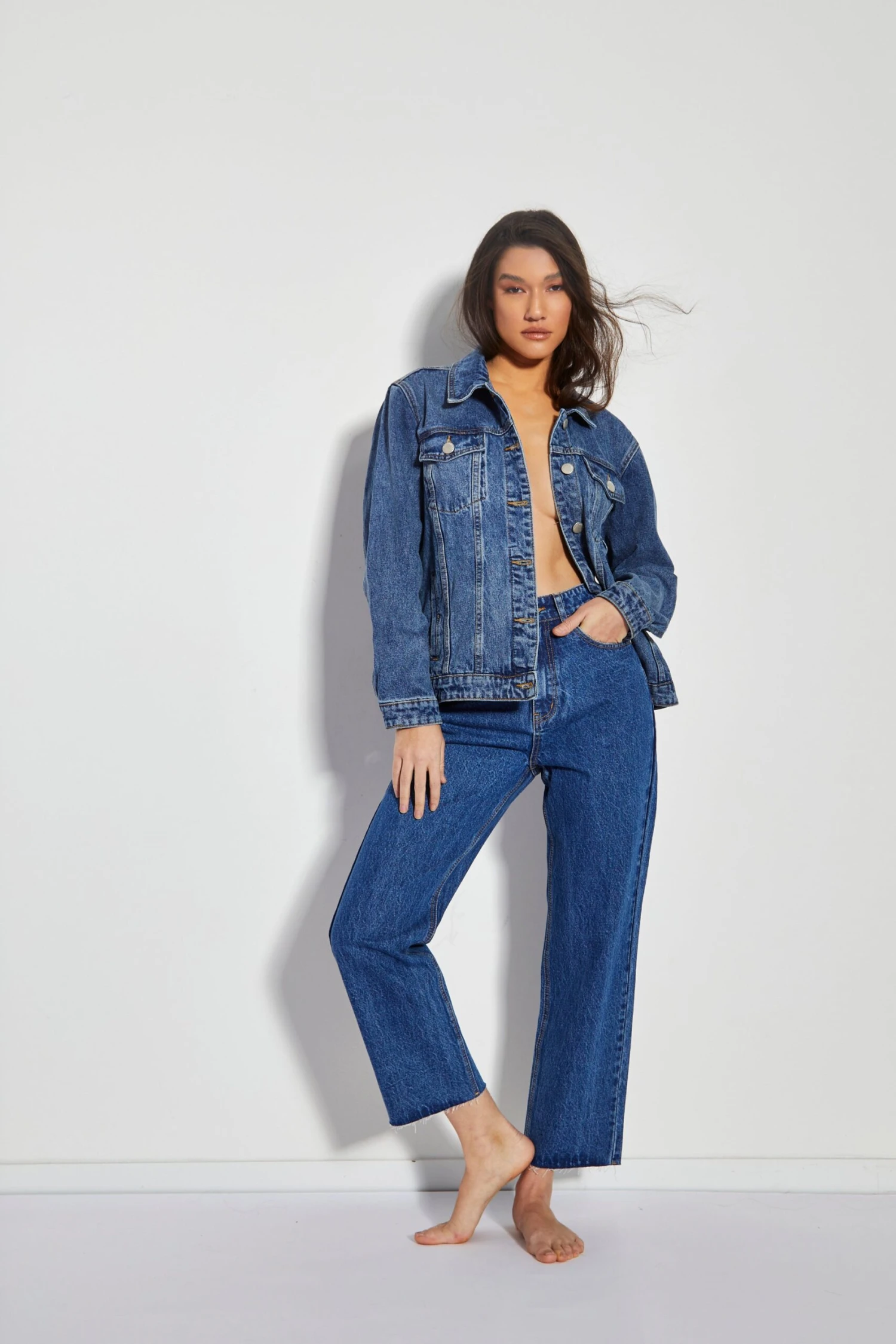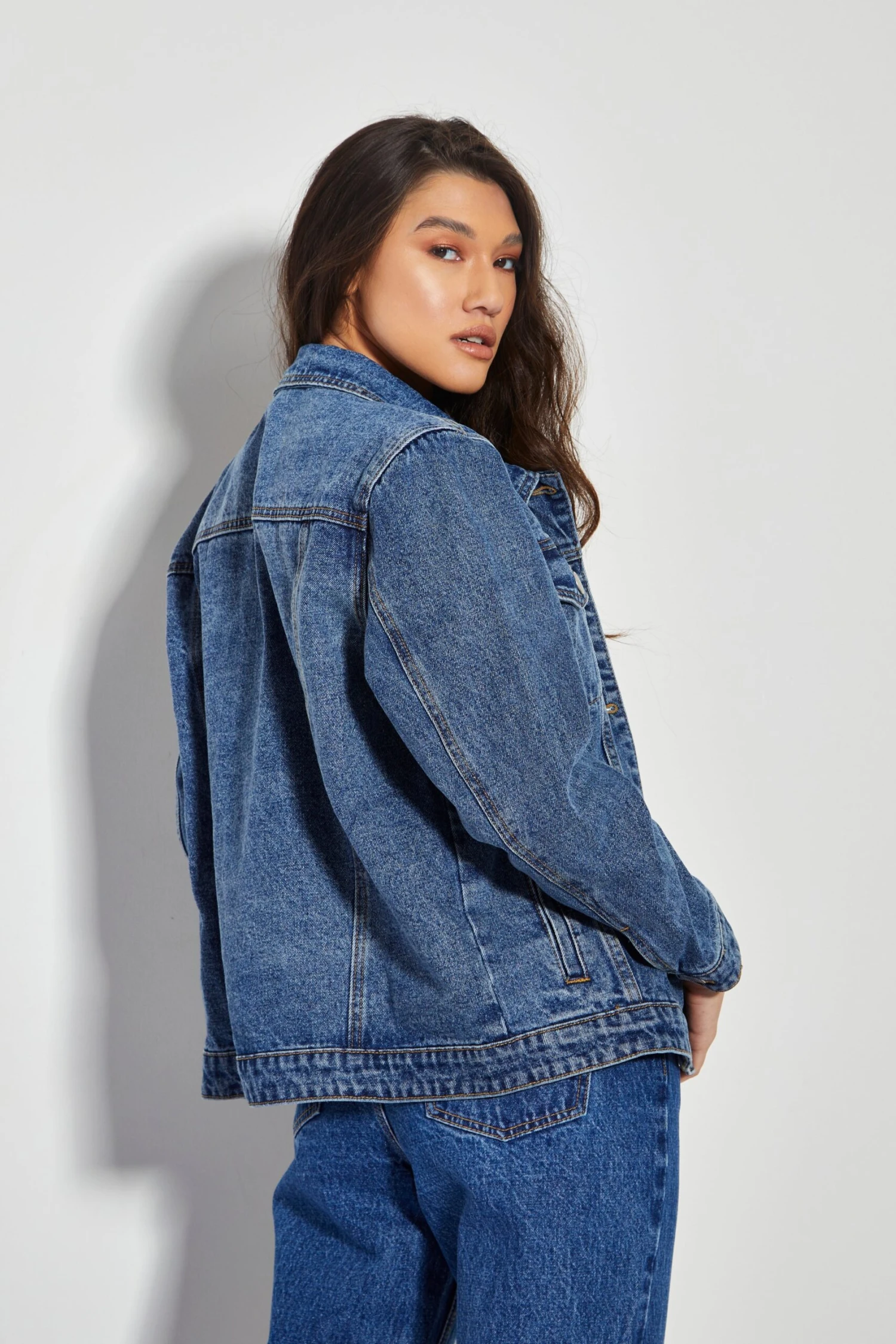 Glamorous Mid Stone Denim Jacket. You can always rely on our cropped denim mid stone jacket. This classic dark blue option looks double the fun paired with jeans.