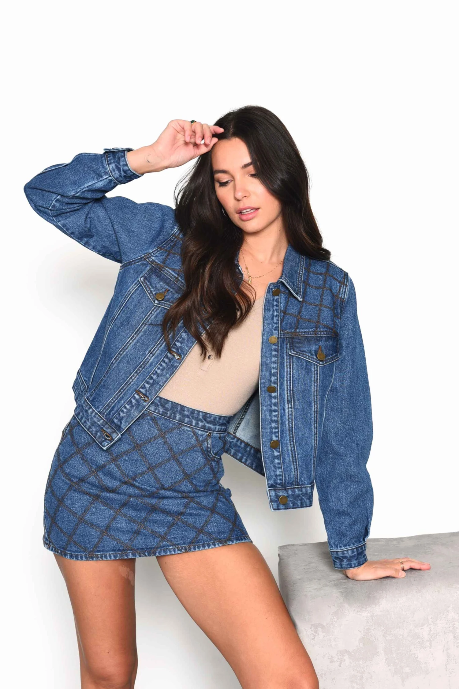 Glamorous Mid Stonewash Denim Cropped Jacket. This Denim jacket is the perfect transitional piece. Perfect to layer over you winter wear, whilst staying fashionable. Featuring a cropped length and diamond stitch design.