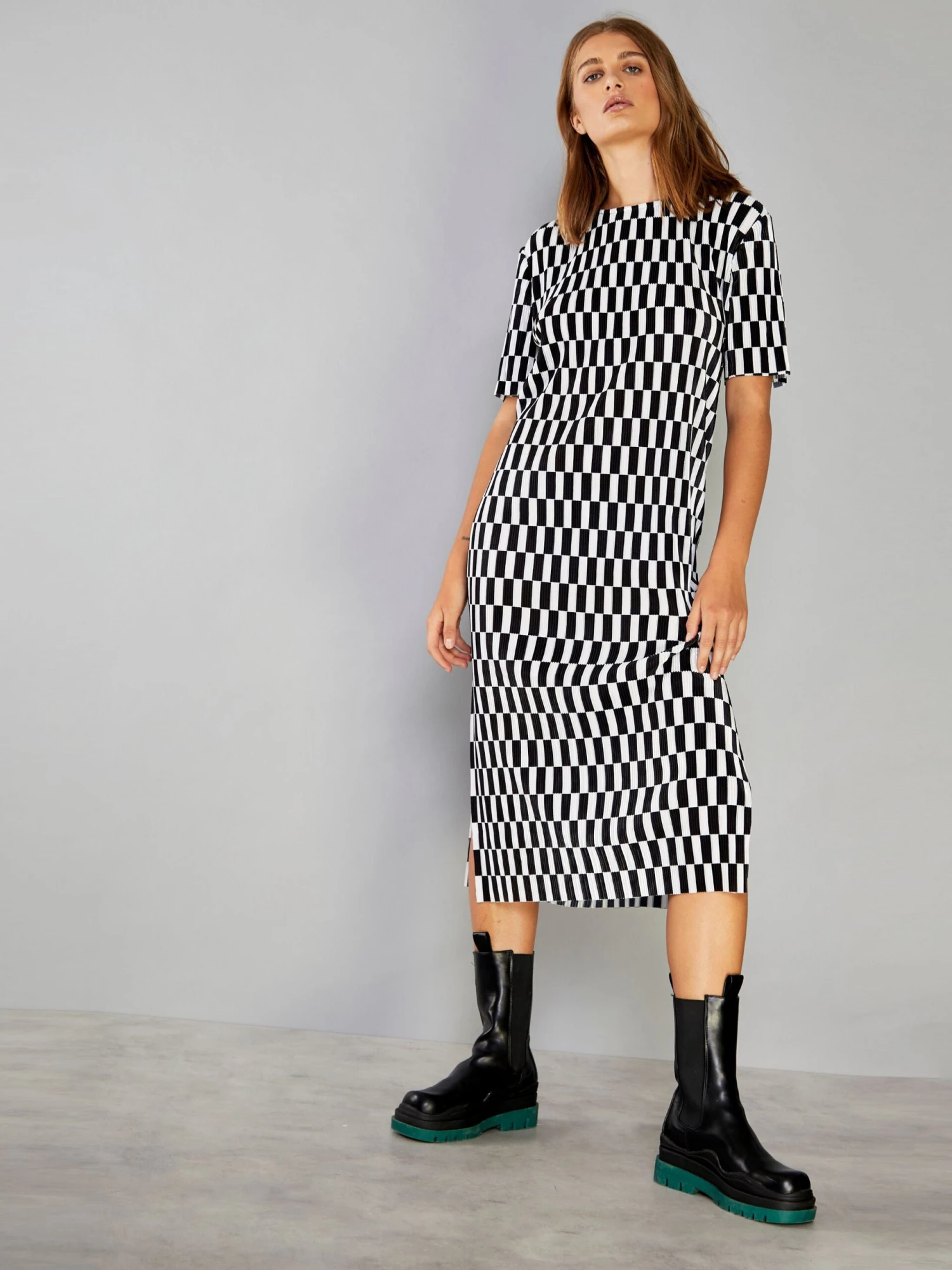 Glamorous Womens Mono Check Plisse Pattern Midi Dress. This super on trend midi dress is the must have staple piece this season. Featuring a simplistic midi style and on trend pattern, this dress is super flattering addition to your closet! Style with your favourite boots for the daytime and switch to heels for the evening.