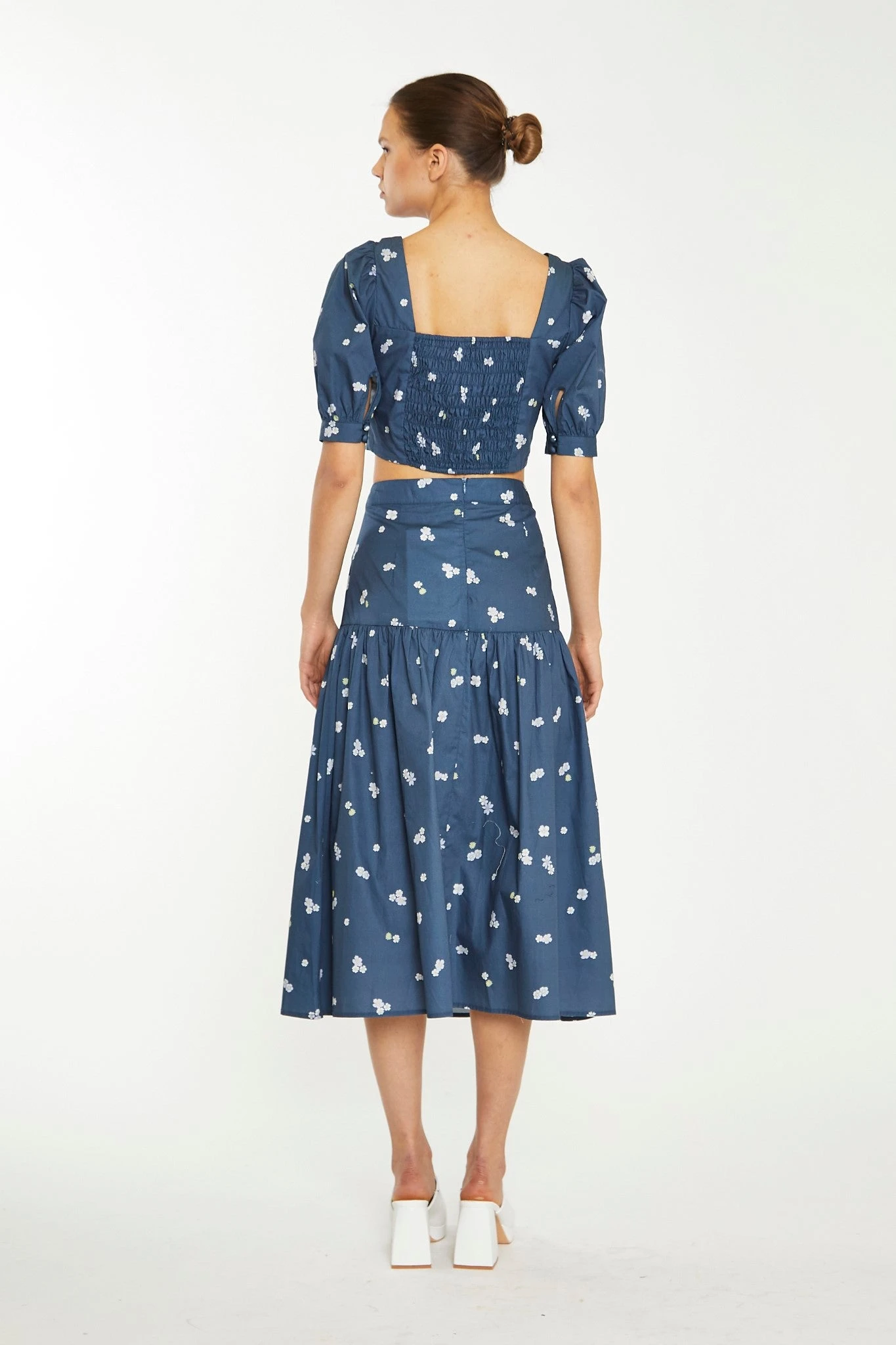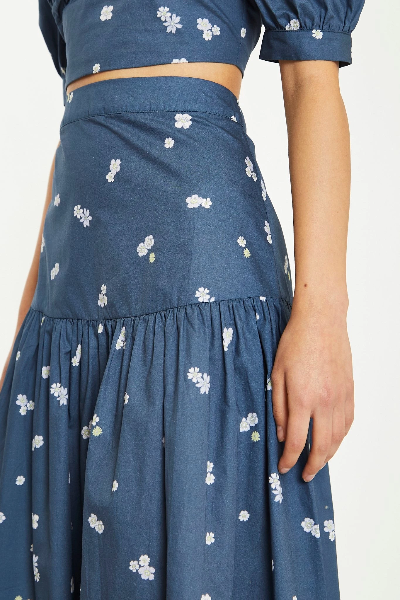Glamorous Womens Navy Scattered Flower Midi Skirt. We are totally loving the floral trend and this midi skirt ticks all the boxes. Featuring a gorgeous, scattered flower print and a flattering tiered fit, we love this statement piece here at Glamorous! Elevate the look with some mule sandals and a cute strappy bag for an on-trend vibe.