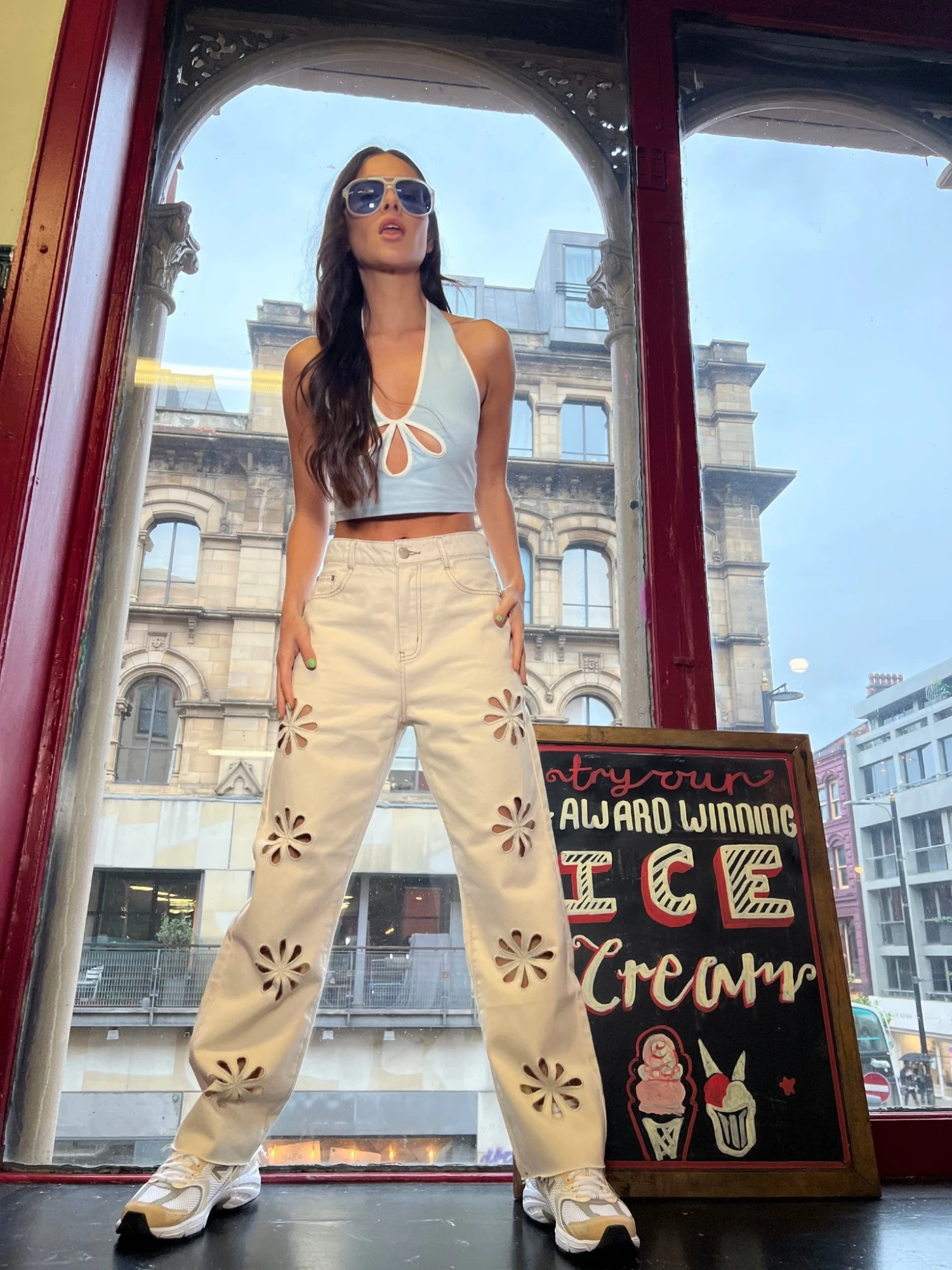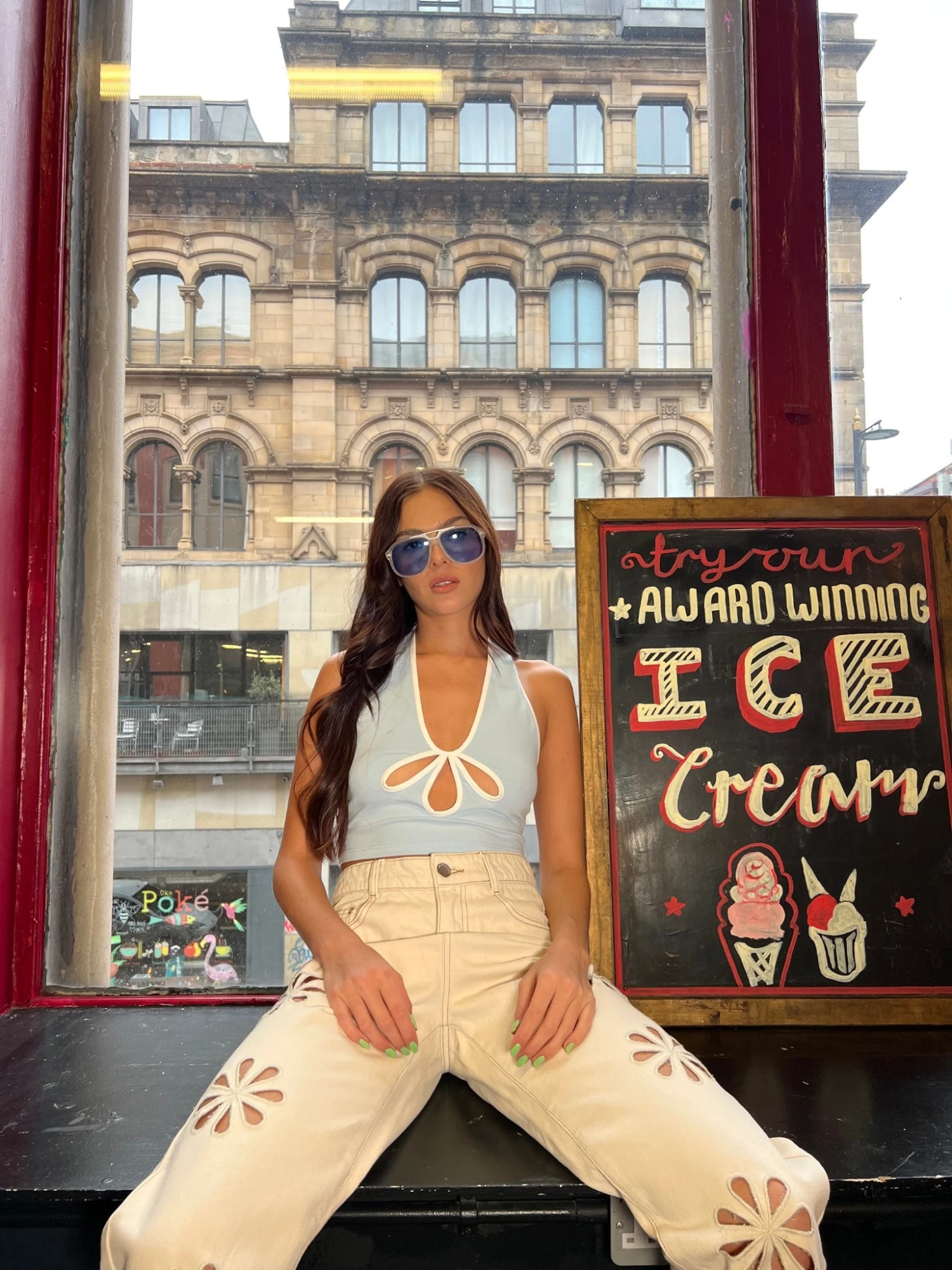 Glamorous Womens Pale-Blue White Keyhole Halterneck Top. This halterneck top is such a must have! With keyhole detailing and contrast binding that stands out, this versatile piece can easily be dressed up or down, to suit all your needs!