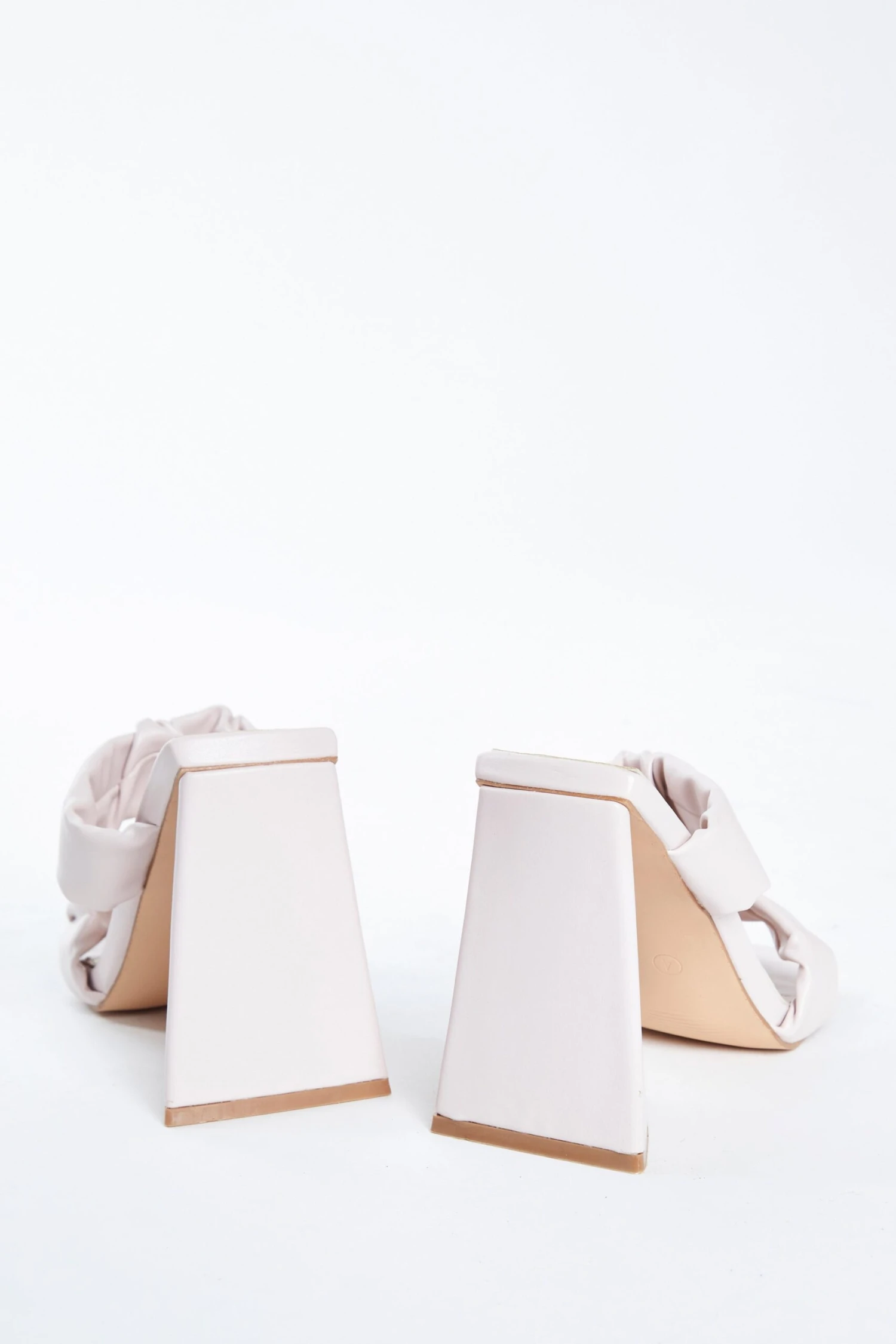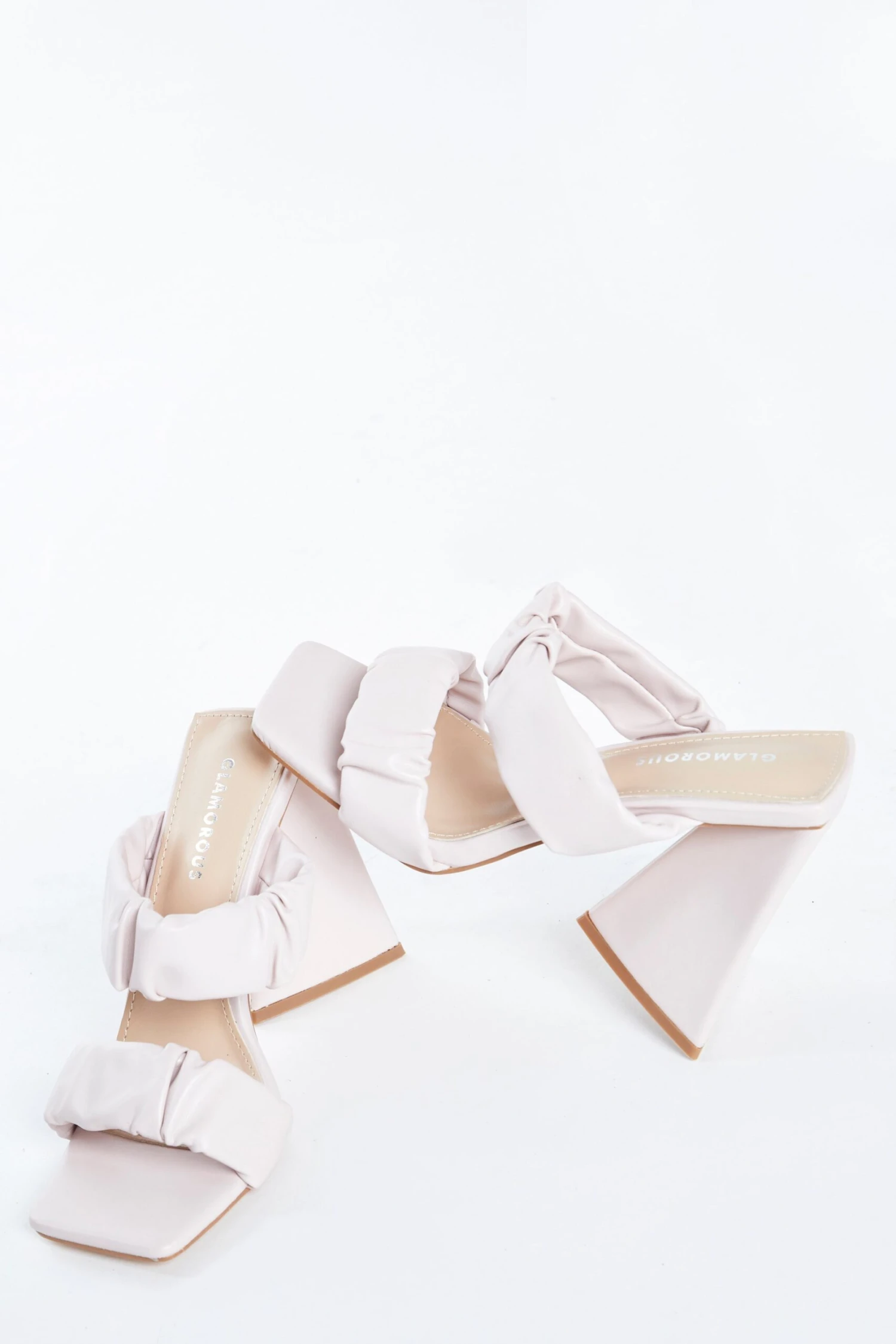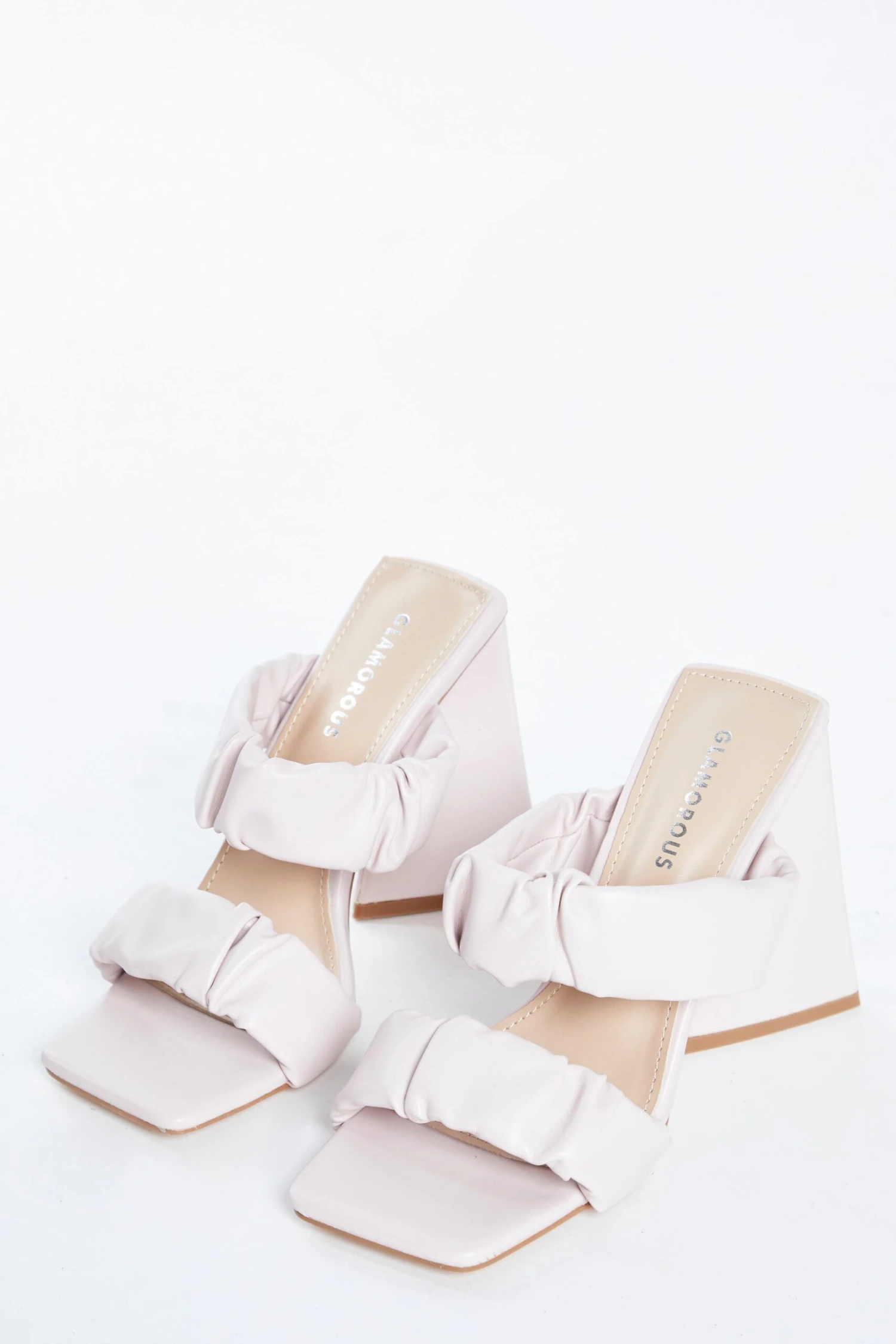Glamorous Womens Pink Flared Block Heel Mules. Designed to make a statement, these pretty pink mules with on-trend flared heel are sure to elevate every outfit! Featuring ruched detail straps and square toe, looks great teamed with your favourite jeans and a cute top for date night!