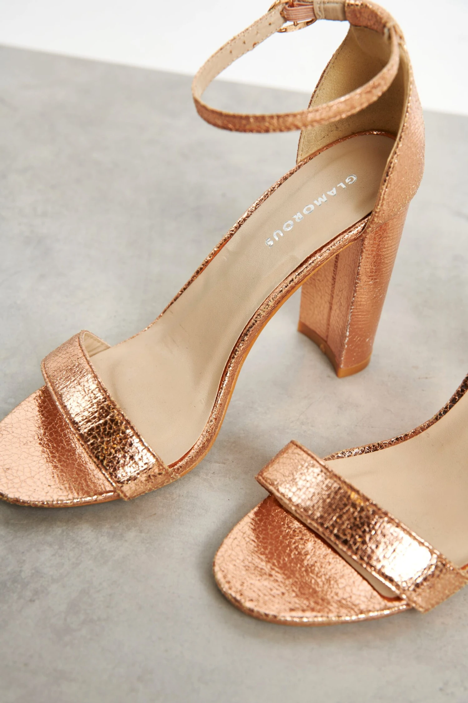 Glamorous Womens Rose Gold Square Toe Block Heels. Featuring block heel, square toe and strappy shape, these barely there heels are the ultimate wardrobe staple. Super chic and highly versatile, looks great teamed with jeans for date night or dressed up with a floral dress for a wedding.Â