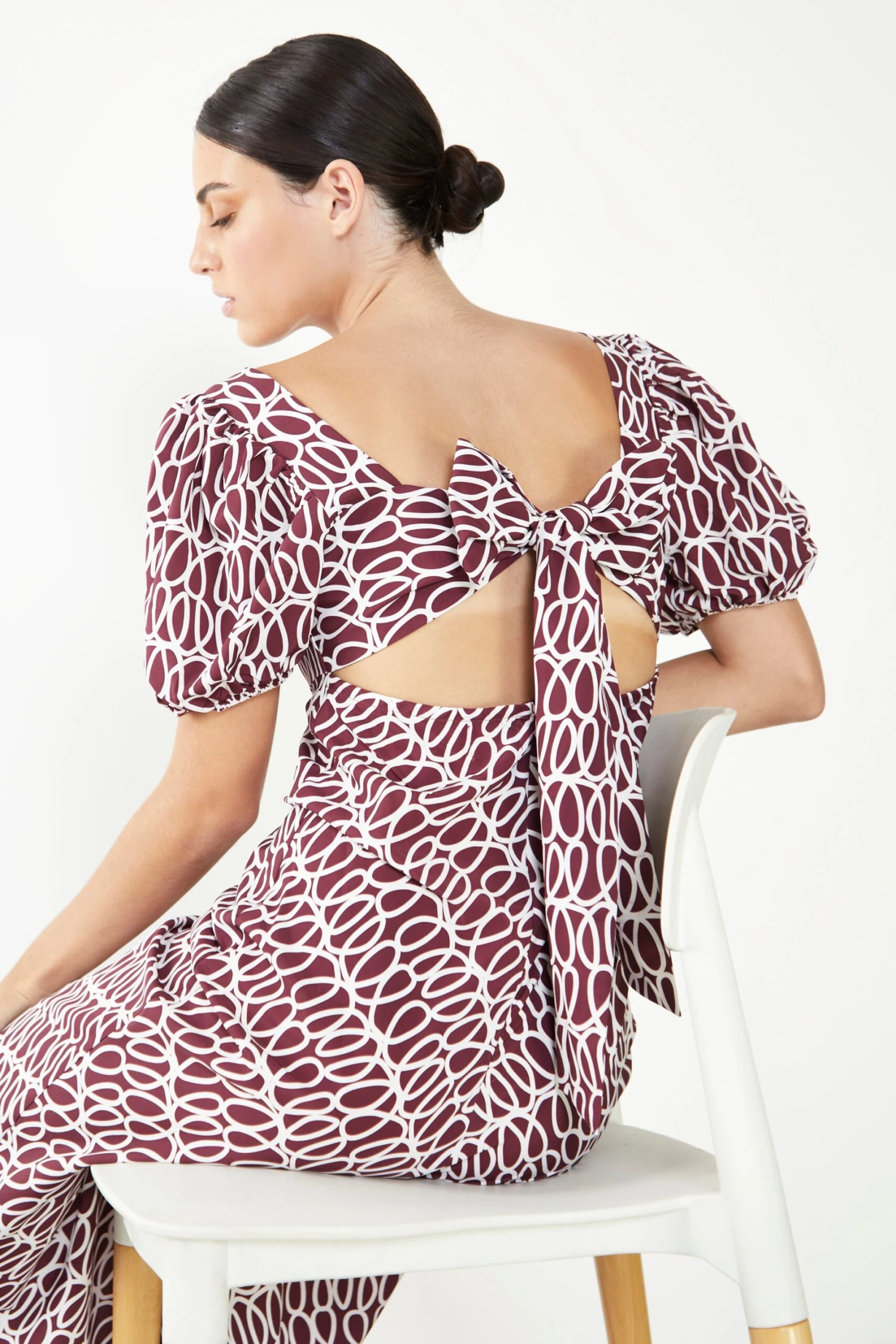 Glamorous Short Puff Sleeve Maxi Dress with Tie Back Detail GLE PRINT