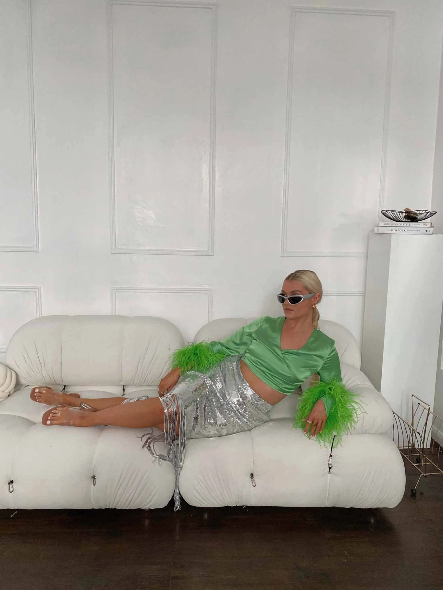 Glamorous Silver Sequin Fringe High Waisted Midi Skirt. Opt for sparkle with this gorgeous sequin skirt. Featuring a high waisted fit with a sequin tassel hem, we love this piece here at Glamorous. Elevate the look with statement top and heels to create that fashion forward luxe feel.Â