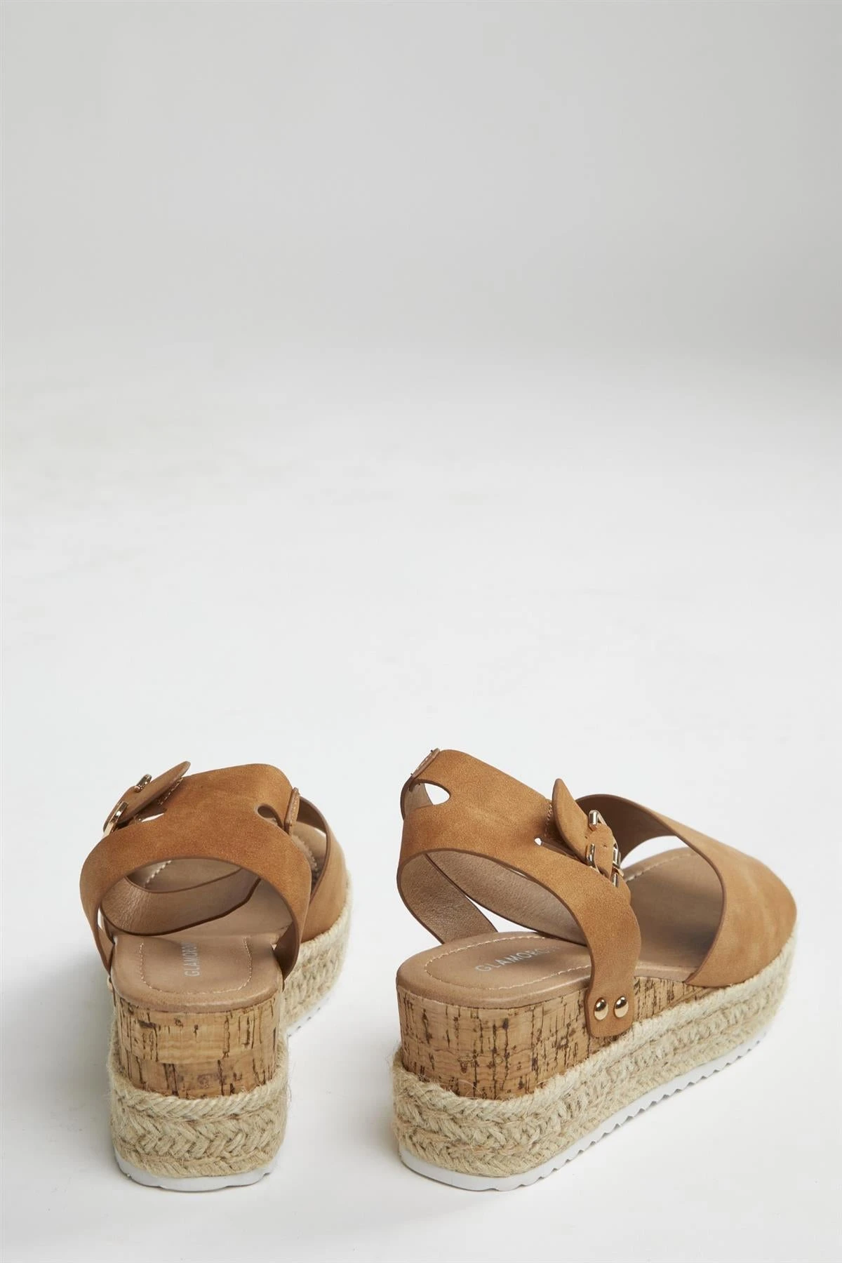 Glamorous Women’s Tan Nubuck Espadrille Sandals. Look summer-ready with these cream espadrille sandals! Enjoy the support and comfort of the thick sole and adjustable buckle fastening, while the open toe and flat sole give a chic, stylish look. An absolute must-have!