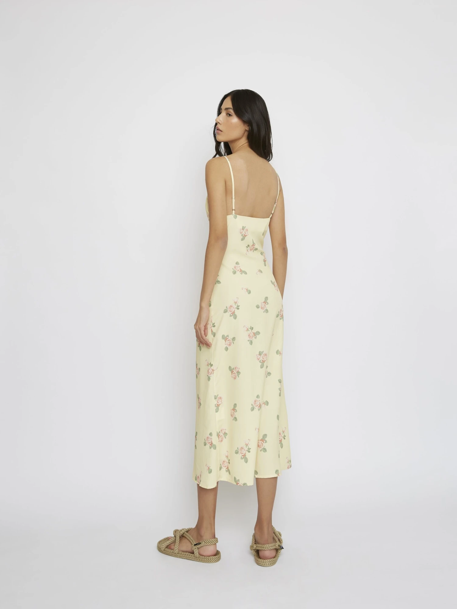 Glamorous Womens Yellow Pink Rose Floral Midi Dress. This classic dress with a refreshing floral print is destined for your wardrobe this season. Featuring a gorgeous flower print and flattering fit.This fashion forward look will have you turning heads wherever you go. Style with trainers for a casual look or heels for a dressed up style.