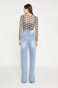 Glamorous Wavy Mono Mesh Long Sleeve Bodysuit