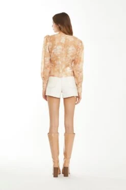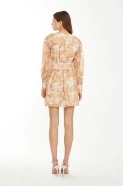Glamorous Tan White Floral Button-Through Mini-Dress