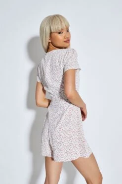 Glamorous Pink Mini Vintage Rose Tie Waist Short Sleeve Playsuit